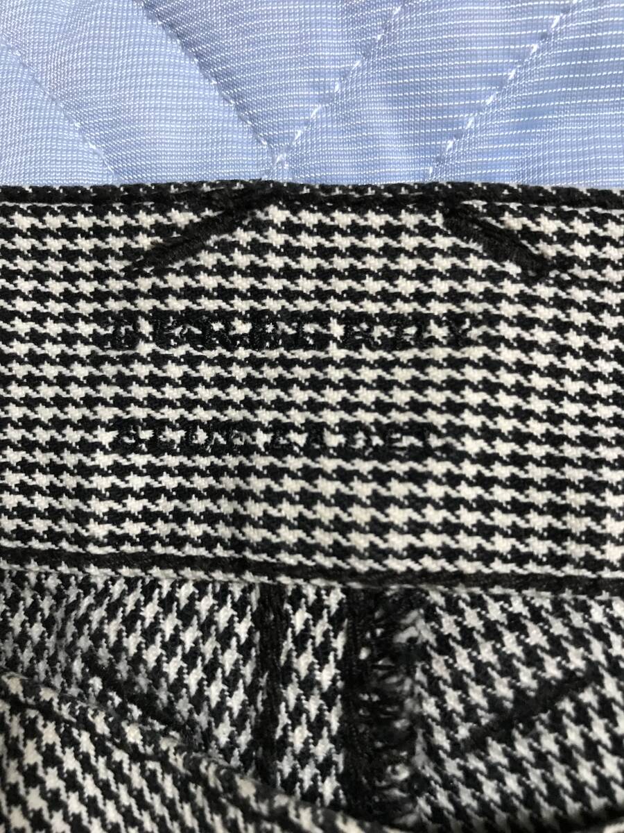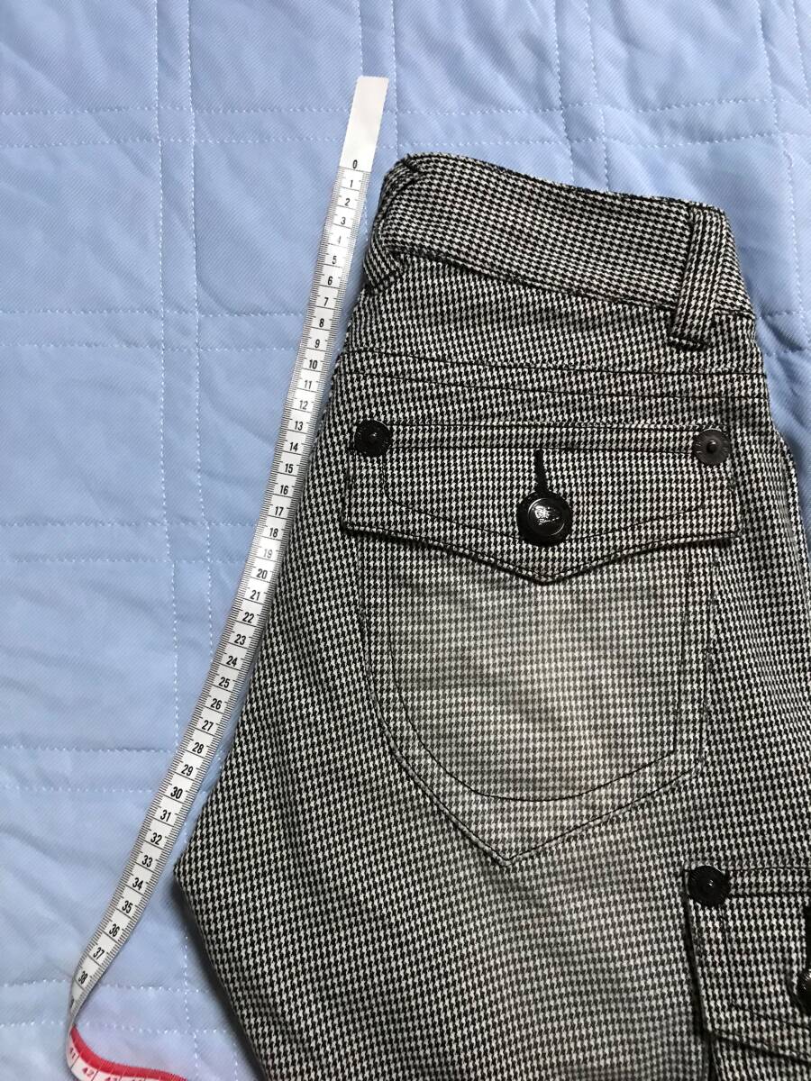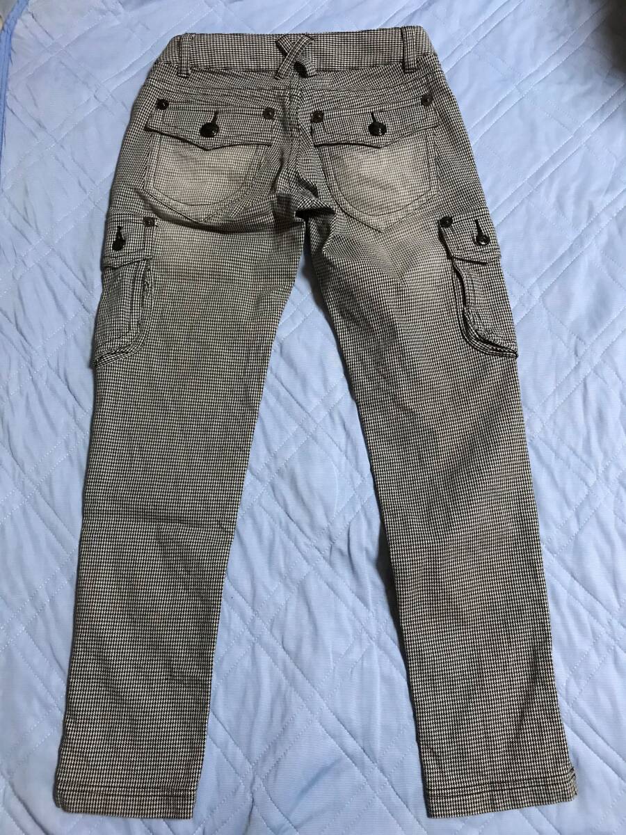 ・黒白細かな格子柄、綿99%、サイドにカーゴ風リアルポケットのあるデザインのパンツです。