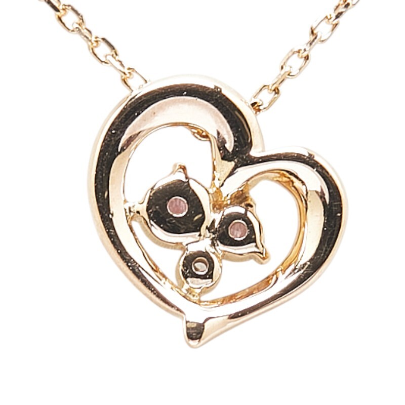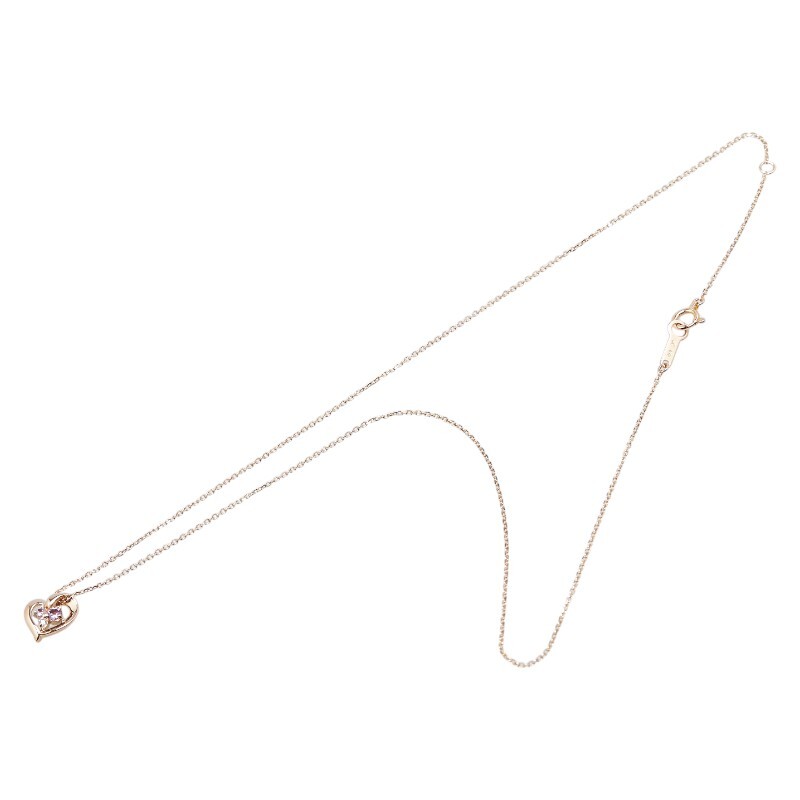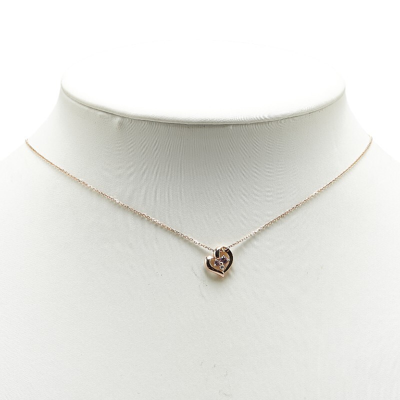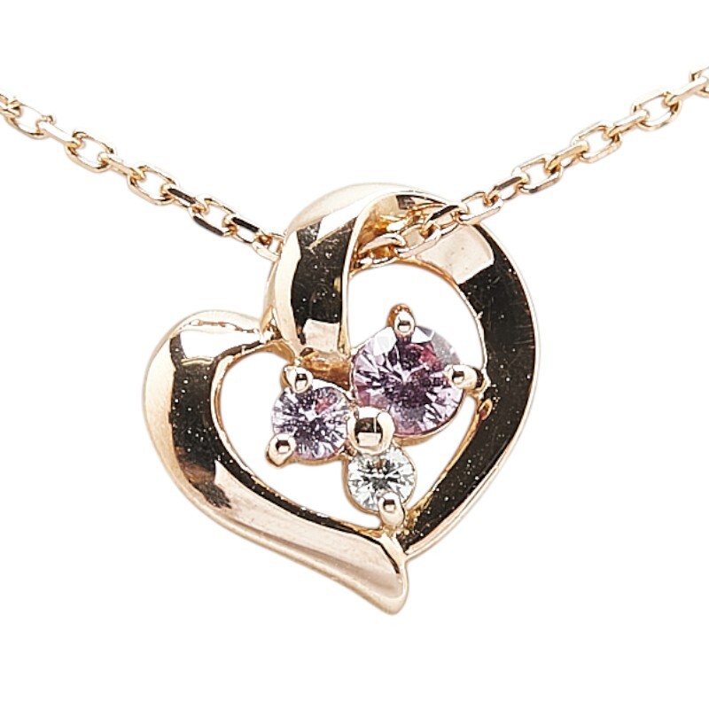 ヨンドシー K18PG ピンクゴールド ピンクサファイア ダイヤ ハート モチーフ ネックレス レディース 4℃ 中古