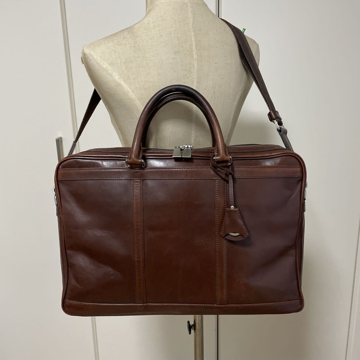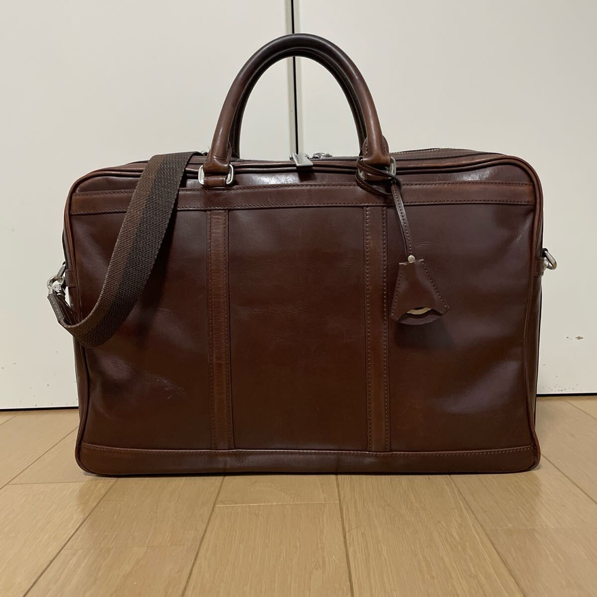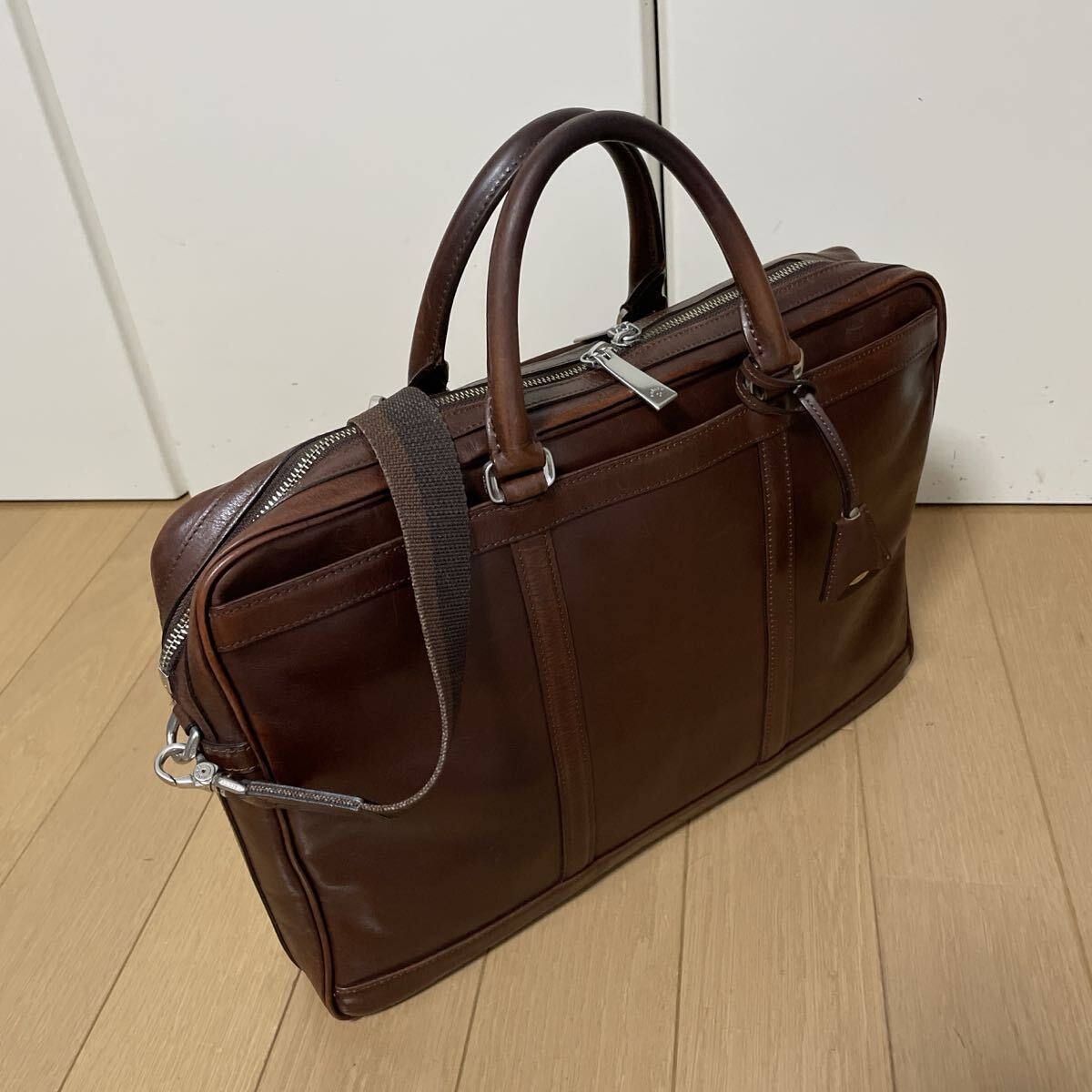若々しい軽やかな印象のデザインはフットワークの軽いデキるビジネスマンを演出させますし、ヘリ巻きの仕様や底鋲はダメージからしっかりと鞄を守り、美しい見た目を保つ役割を果たしてくれます。
