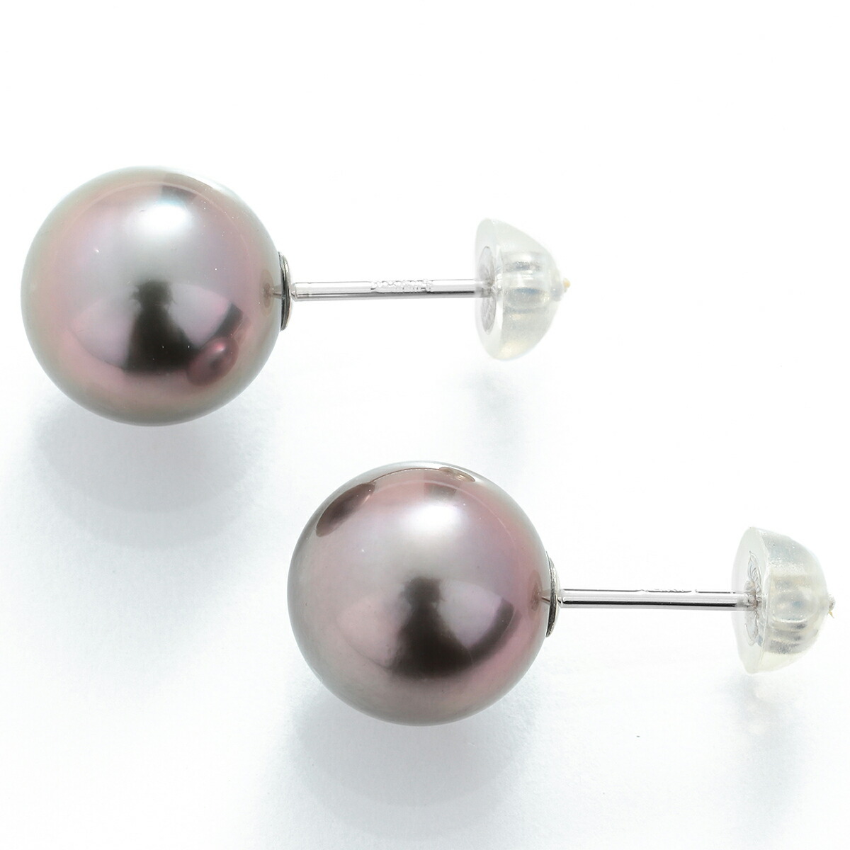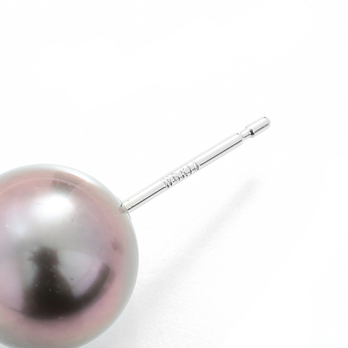 深みのあるグレイッシュな艶をまとった黒蝶真珠をあしらったピアス。シンプルなフォルムながら、しっかりとした存在感を放ち、品格を添える逸品です。落ち着いた色合いと上品な光沢は、普段使いからフォーマルなシーンまで幅広く活躍します。
