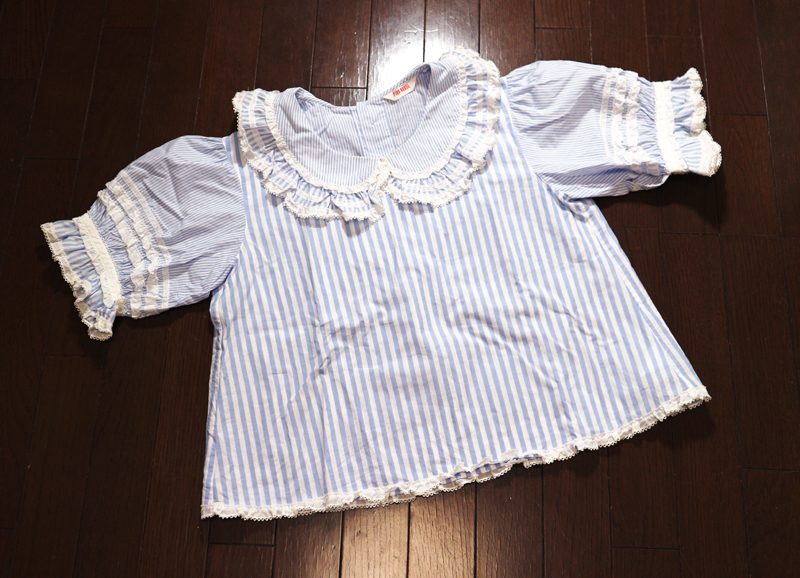 ●ピンクハウス●フリルデザイン ストライプのブラウスとスカートのセット 水色×白