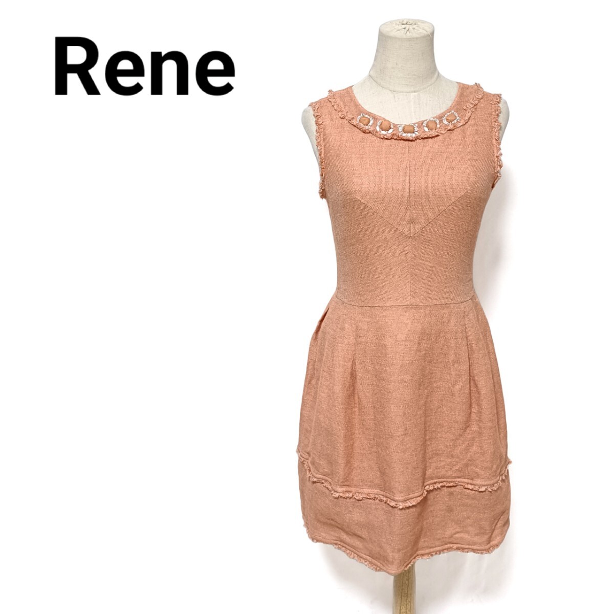 Rene ルネ 大人可愛いビジュー襟ワンピース サーモンピンク 38 レディース