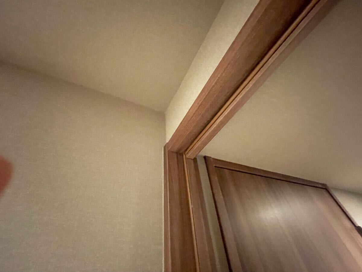 ● モデルルーム展示品 室内トビラ 三方枠付き 下枠無し スリッドガラス ストッパー付き
