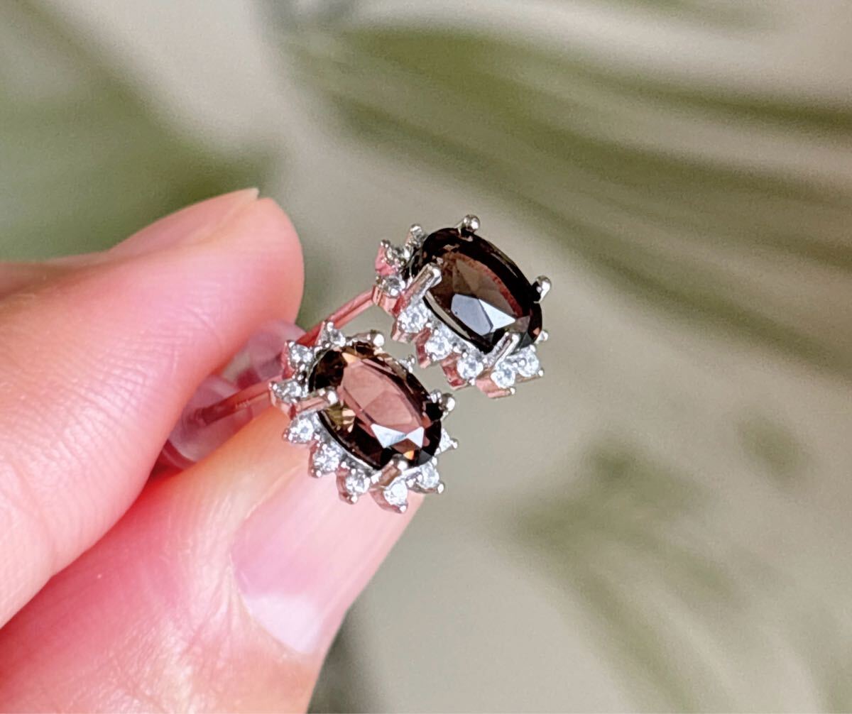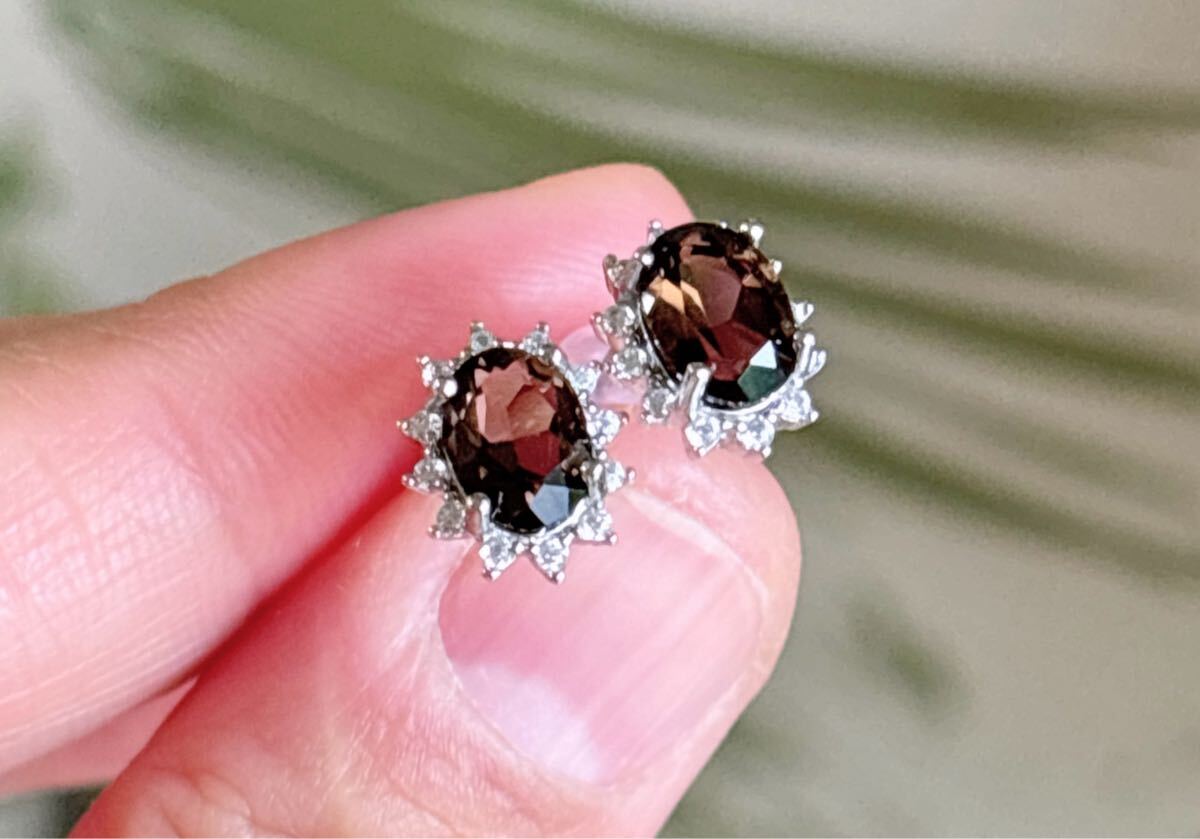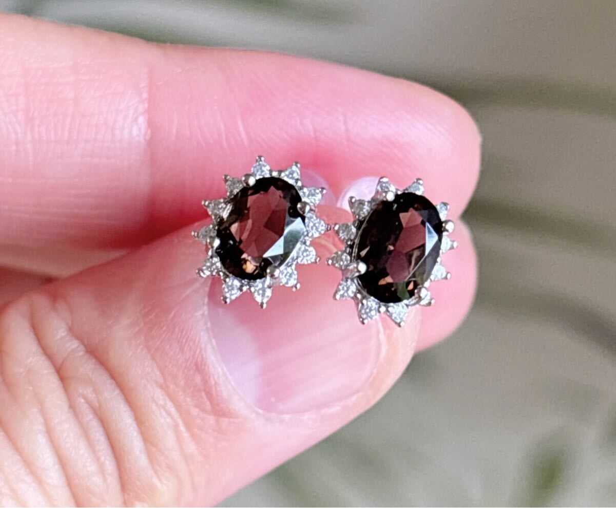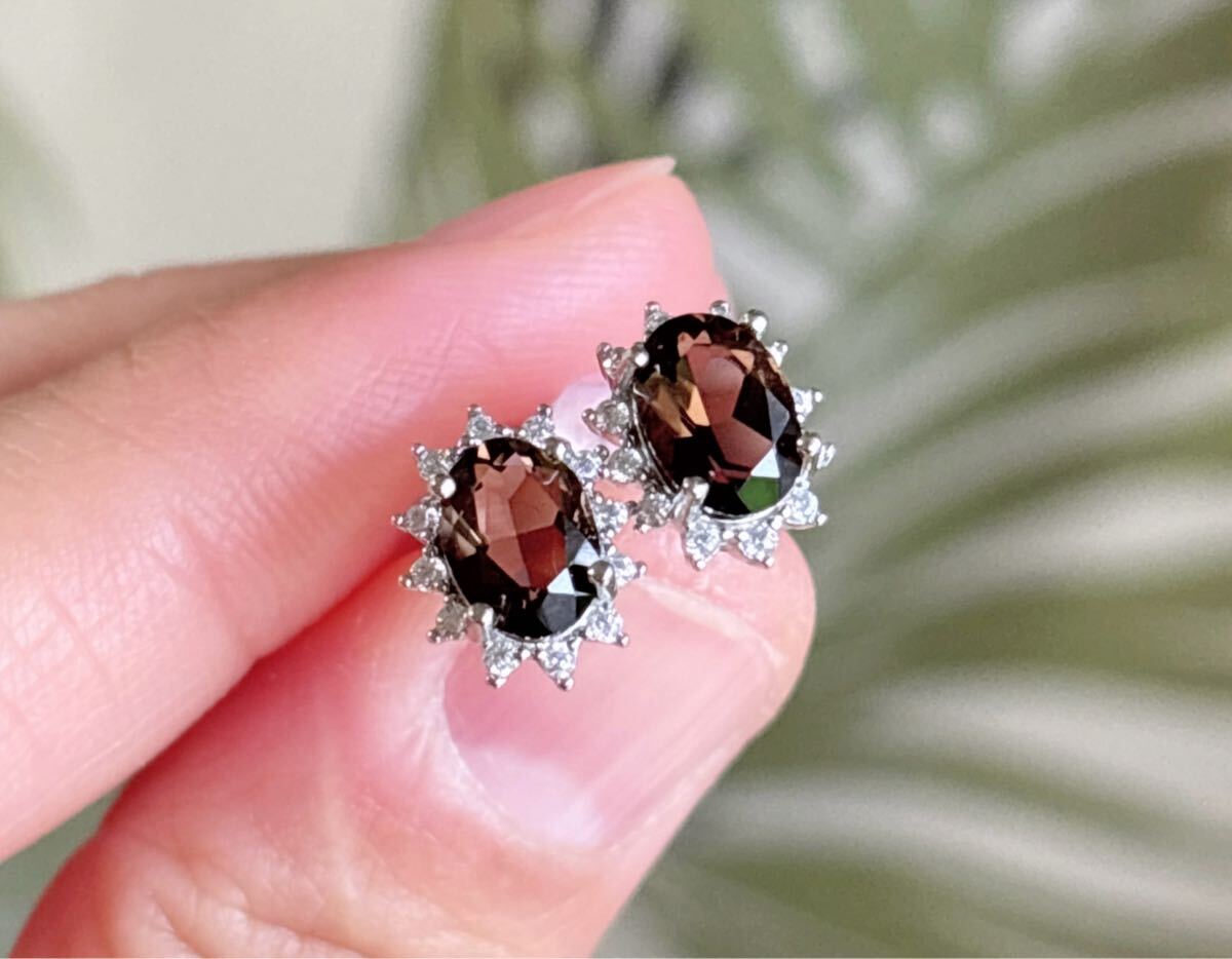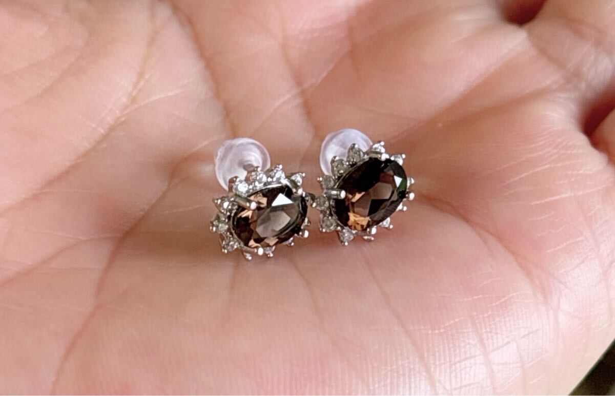 天然石逸品スモーキークォーツ (茶水晶 )ピアスのサイズ約:8mm*10mm*厚さ4mm;