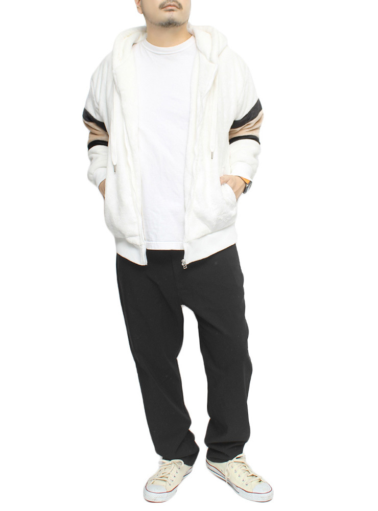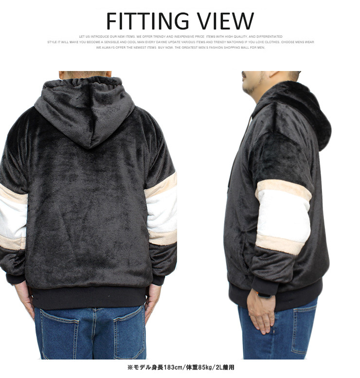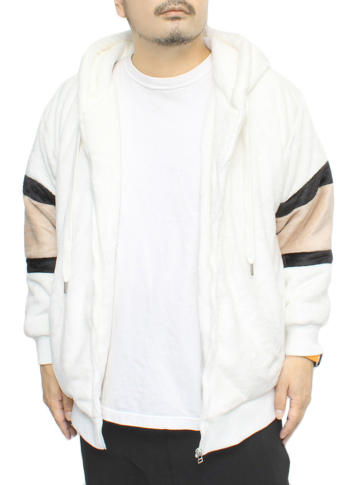 | 商品名 | 【新品】 2L オフホワイト もこもこ ボア パーカー メンズ 大きいサイズ 切替 ジップアップ フリース ブルゾン |