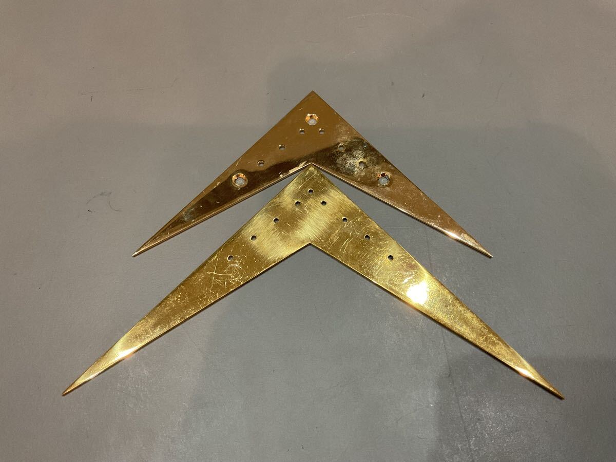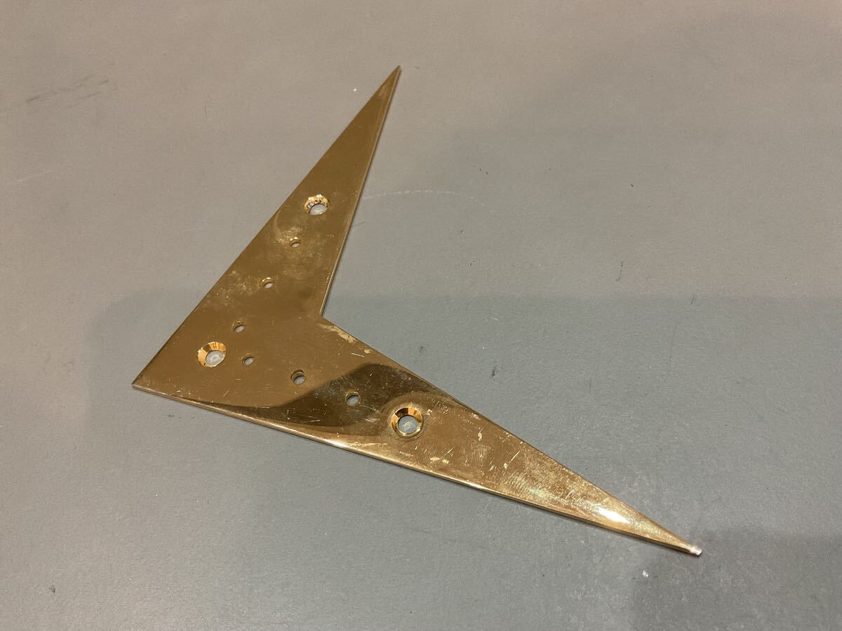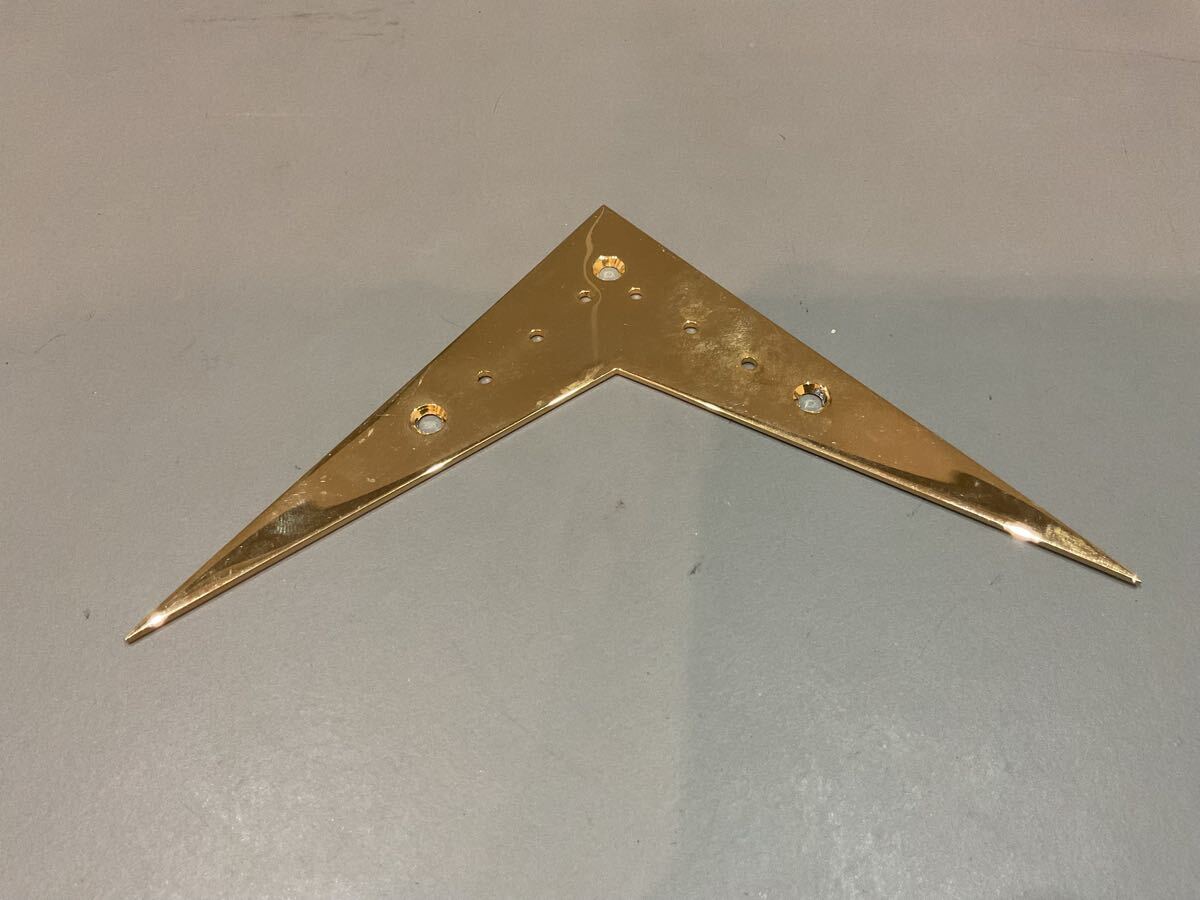 ギブソン工場にあったフライングVテールピースですが、リバース用の小さいサイズの物です。ただネジ穴は市販品とは位置が違う様です。5枚目は大きさの参考画像を載せています。商品は一枚だけです。