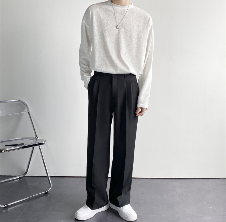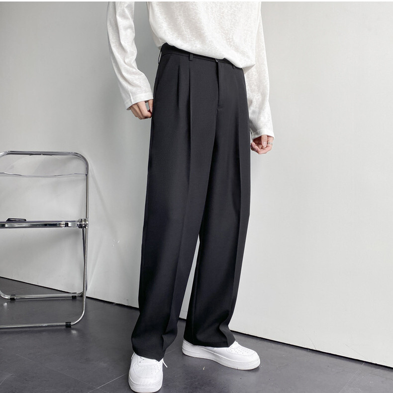ワイドパンツ スラックス ズボン スーツパンツ イージーパンツ オーバーサイズ 韓国 ゆったり 無地 シンプル パンツ 服 メンズ ブラック34