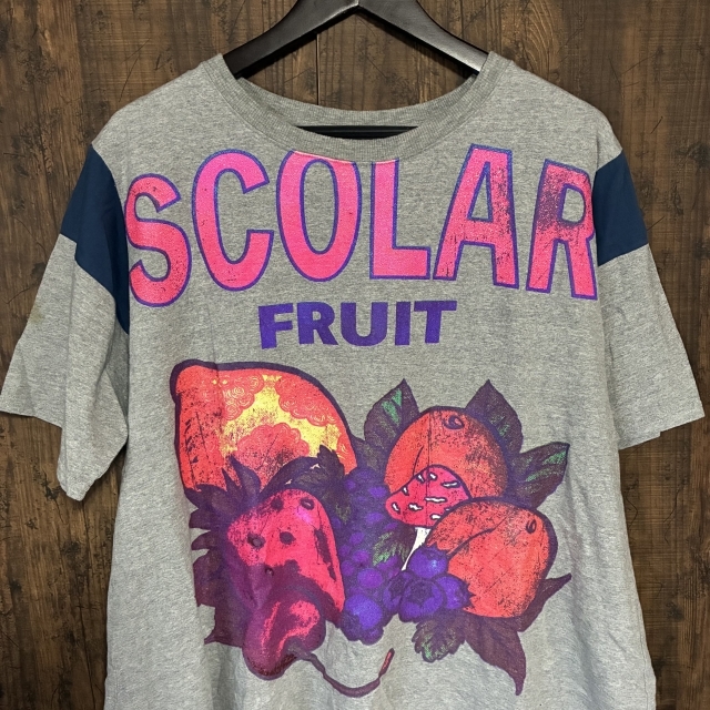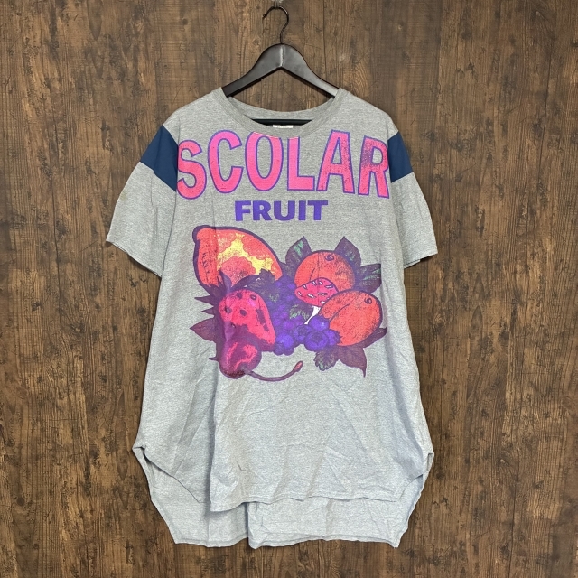 A404◇Scolar | スカラー フルーツプリントチュニックTシャツ グレー×マルチカラー レディース Mサイズ 中古品