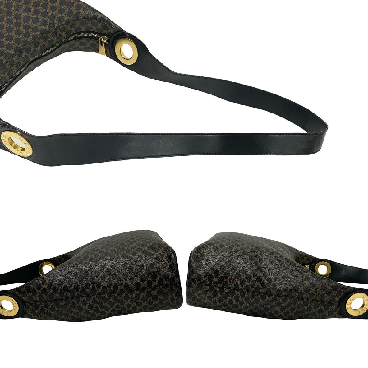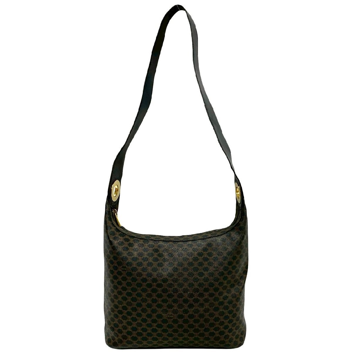 極 美品 CELINE セリーヌ ヴィンテージ マカダム ブラゾン トリオンフ 柄 サークルロゴ 金具 レザー ショルダーバッグ ブラック k95-7