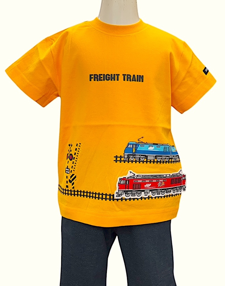 JR貨物のブルーサンダー(プリント)とレッドサンダー(パッチワーク)の天竺生地のTシャツです。