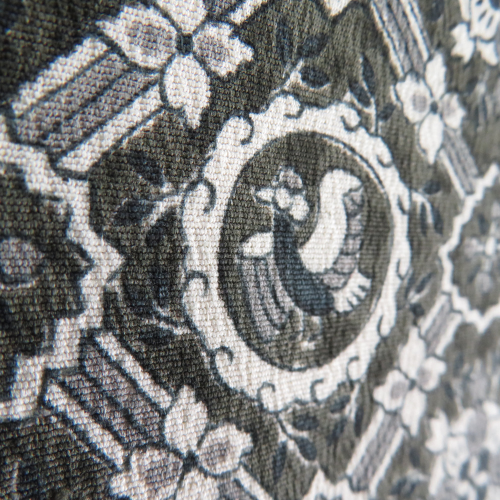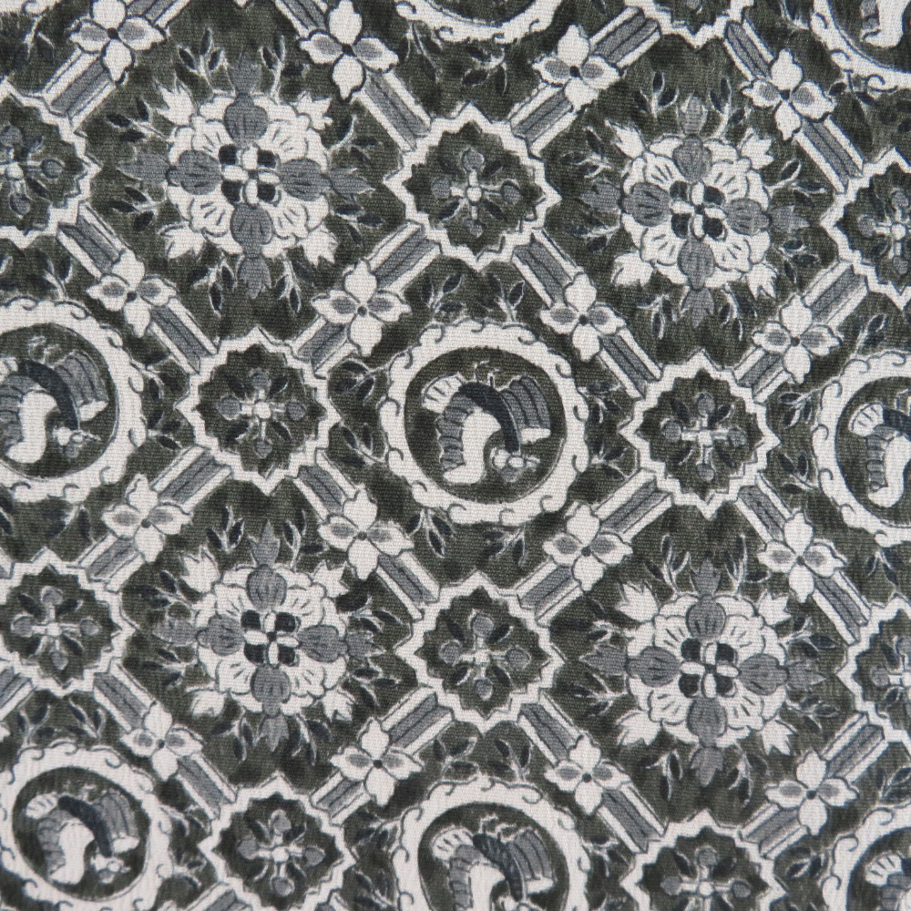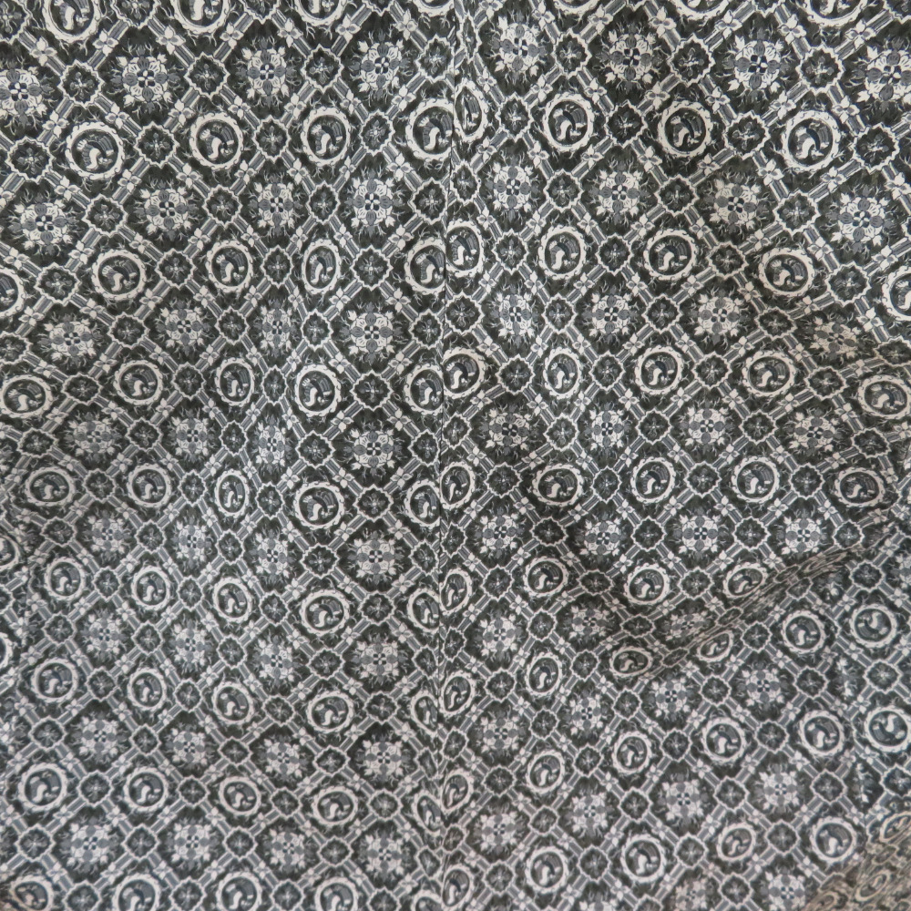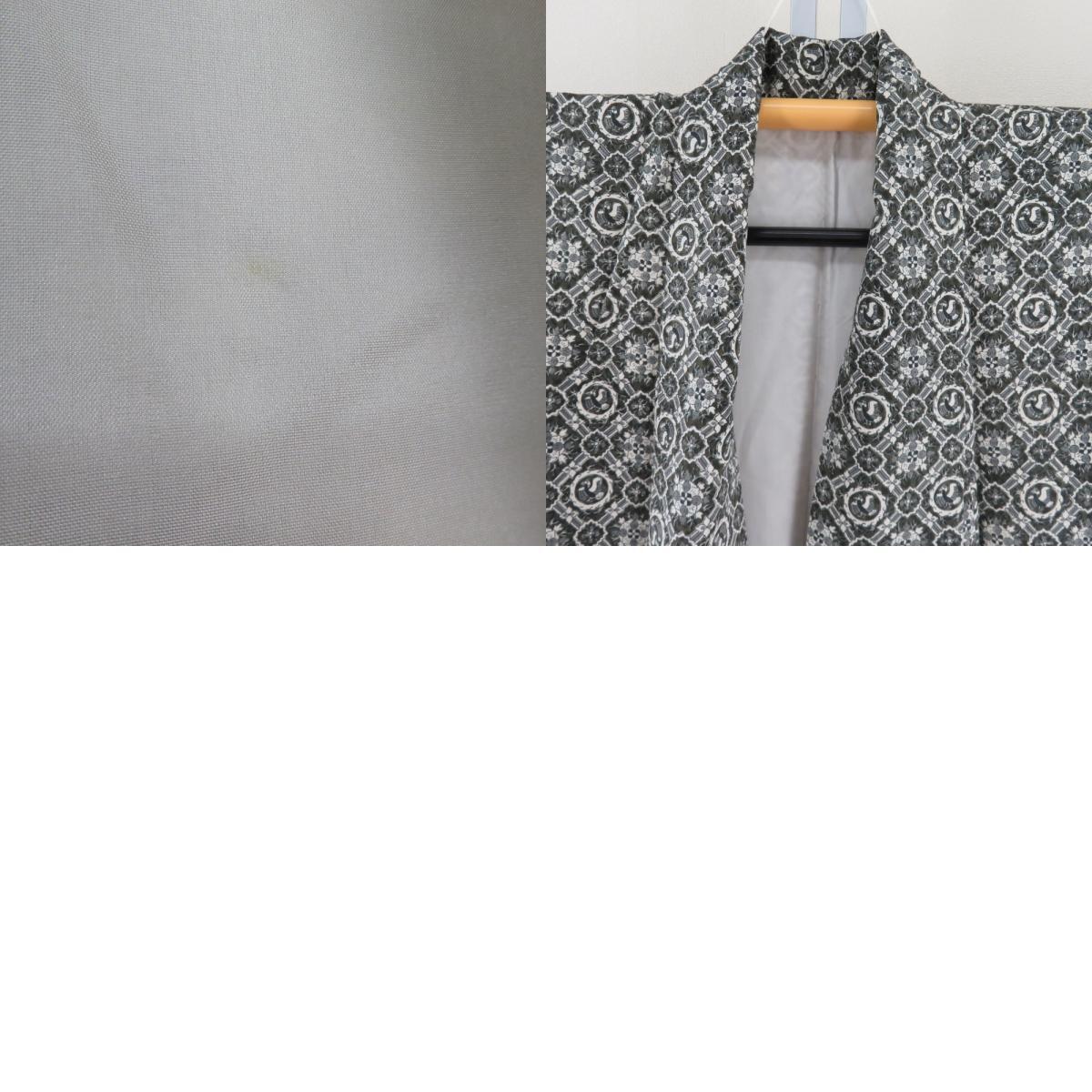 | 小紋 白x黒x灰色x深緑 鳥紋模様 正絹 広衿 仕立て上がり着物 身丈160cm |