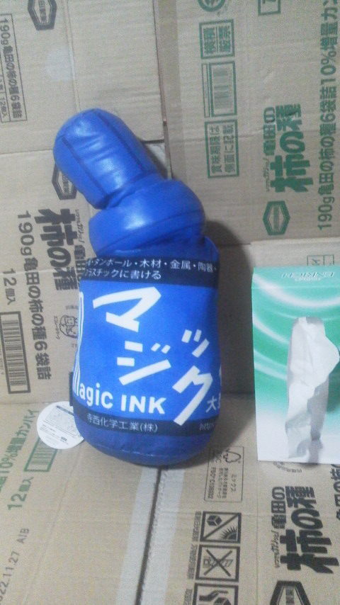 マジックインキ 青 ブルー 油性 タマキ 面白ぬいぐるみ Teranishi 大型クッション 本体約50㎝ 魔法のインキ お絵かき 送料660円