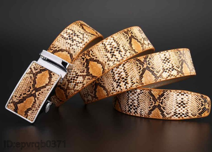 レザーベルト 新入荷 上質 本革牛革 ヘビ柄 オートロック式 ゴルフベルト メンズベルト 紳士 革ベルト 長さ調整可能 2色選ぶ/コーヒー