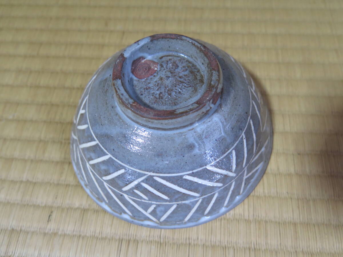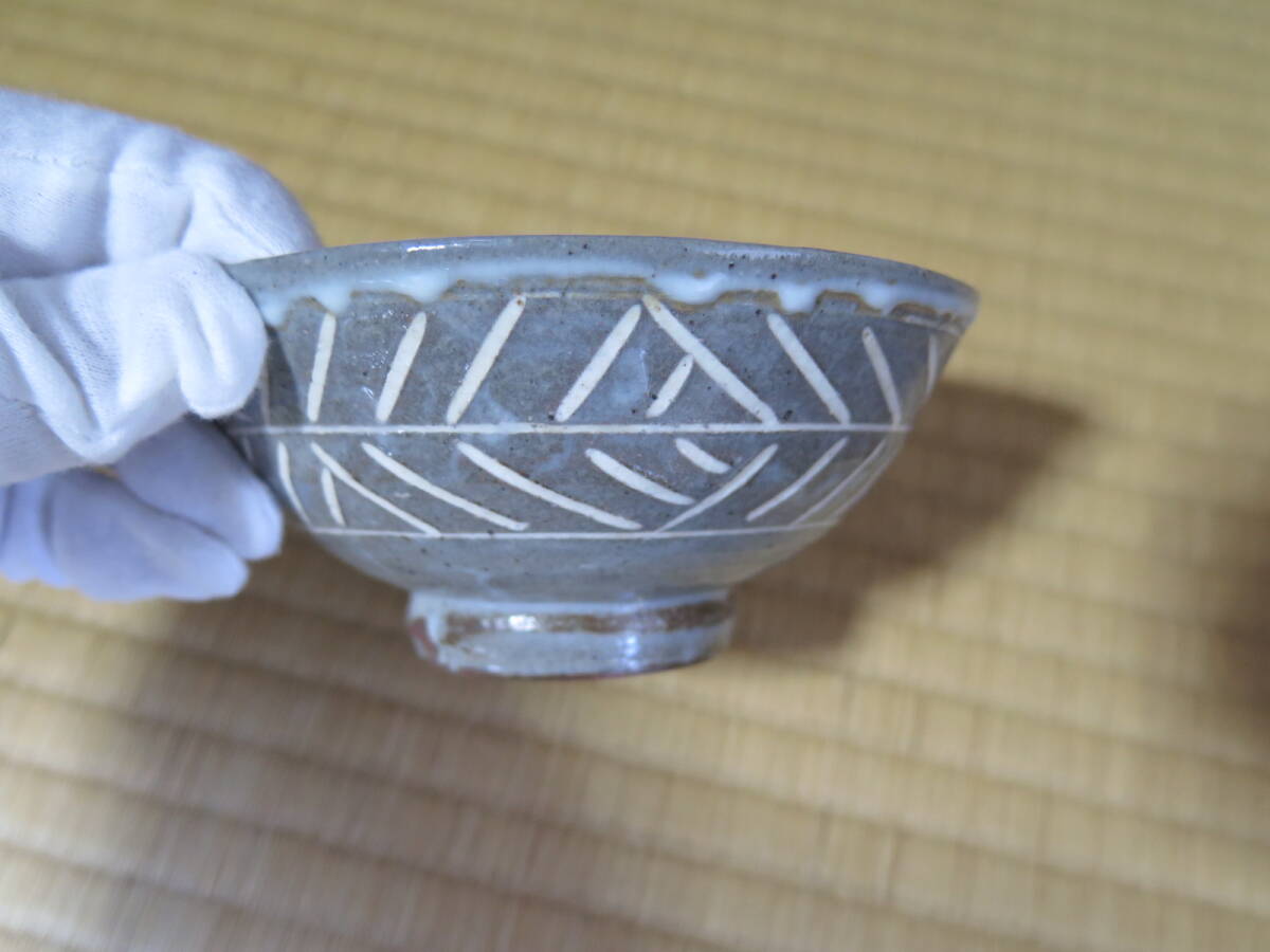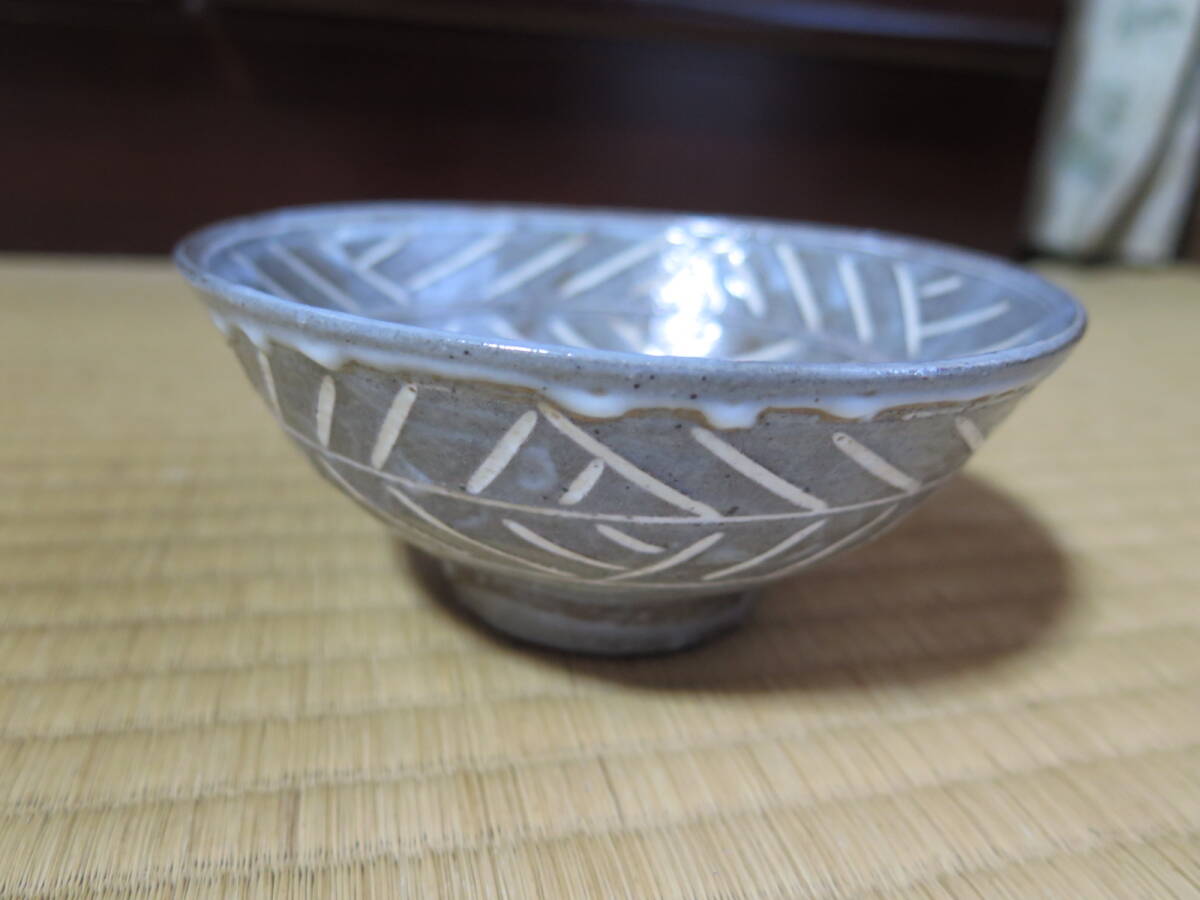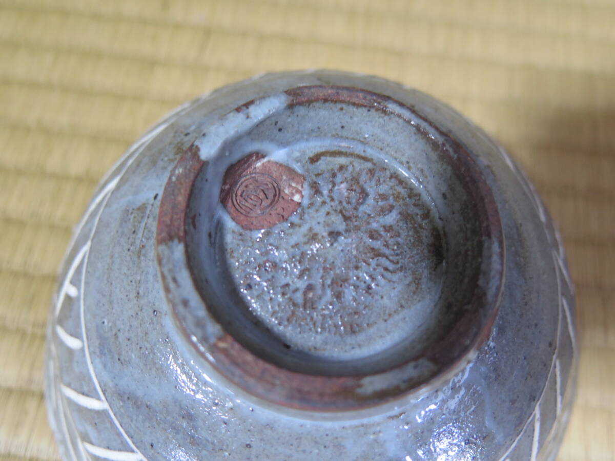 久世久宝、桐紋入彫三島茶碗、共箱、近藤宗恵、書付き、東陽坊保存会印有り