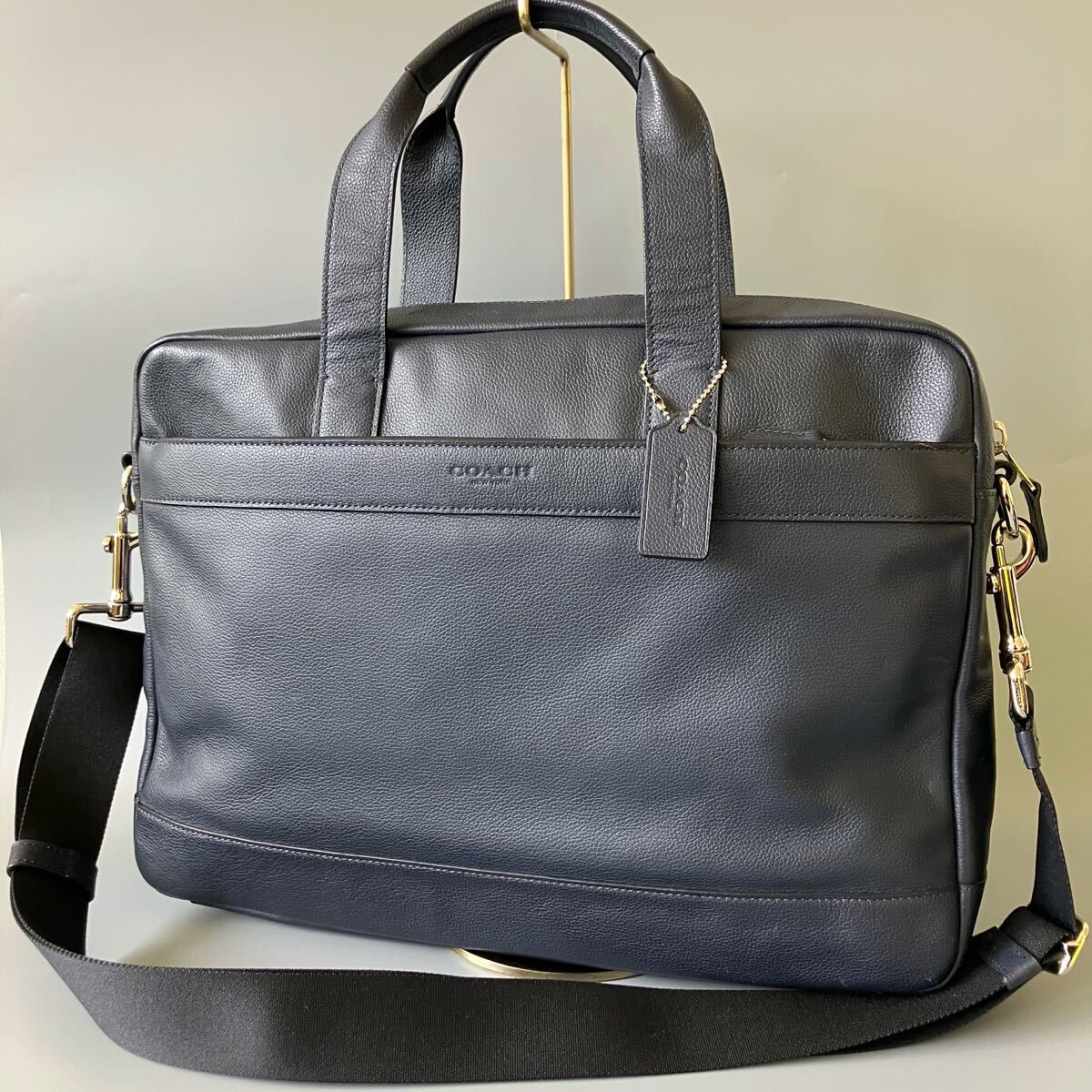 ●極美品 COACH コーチ ハミルトン スムースレザー 牛革 2WAY ブリーフケース/ビジネスバッグ/ネイビー/ショルダー/メンズ/A4対応/書類