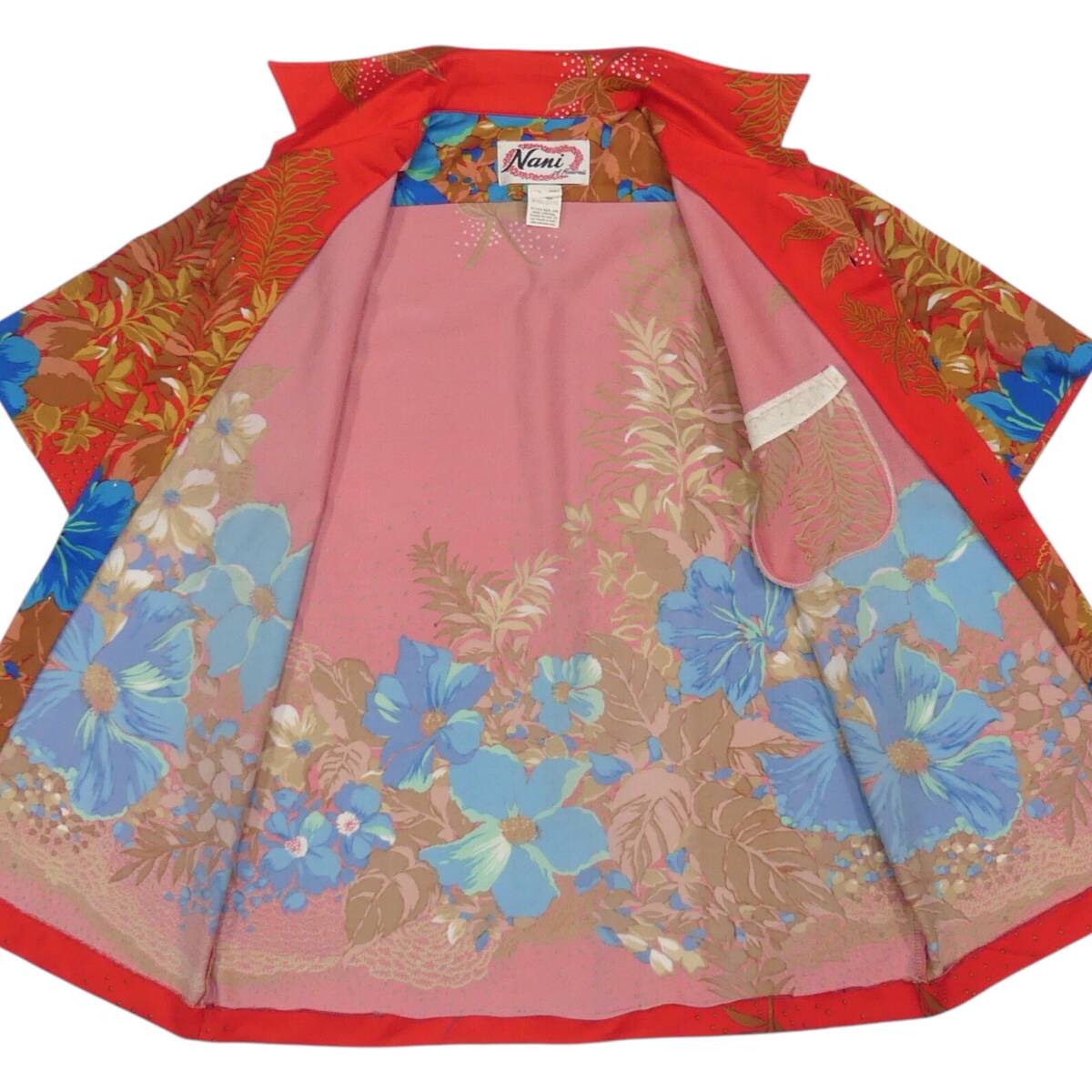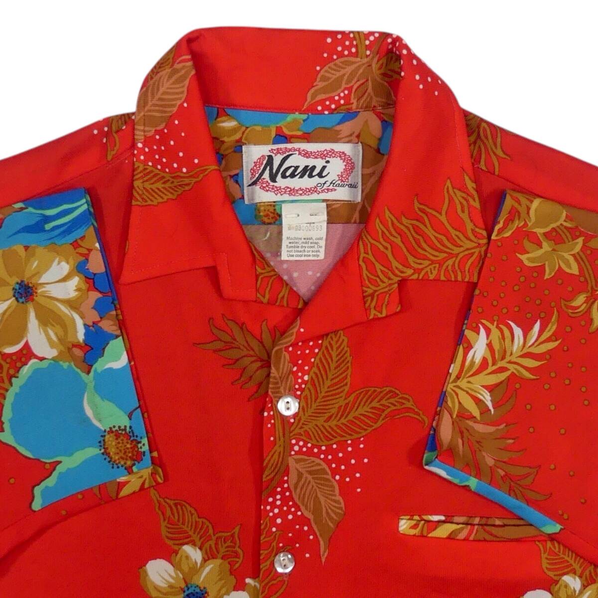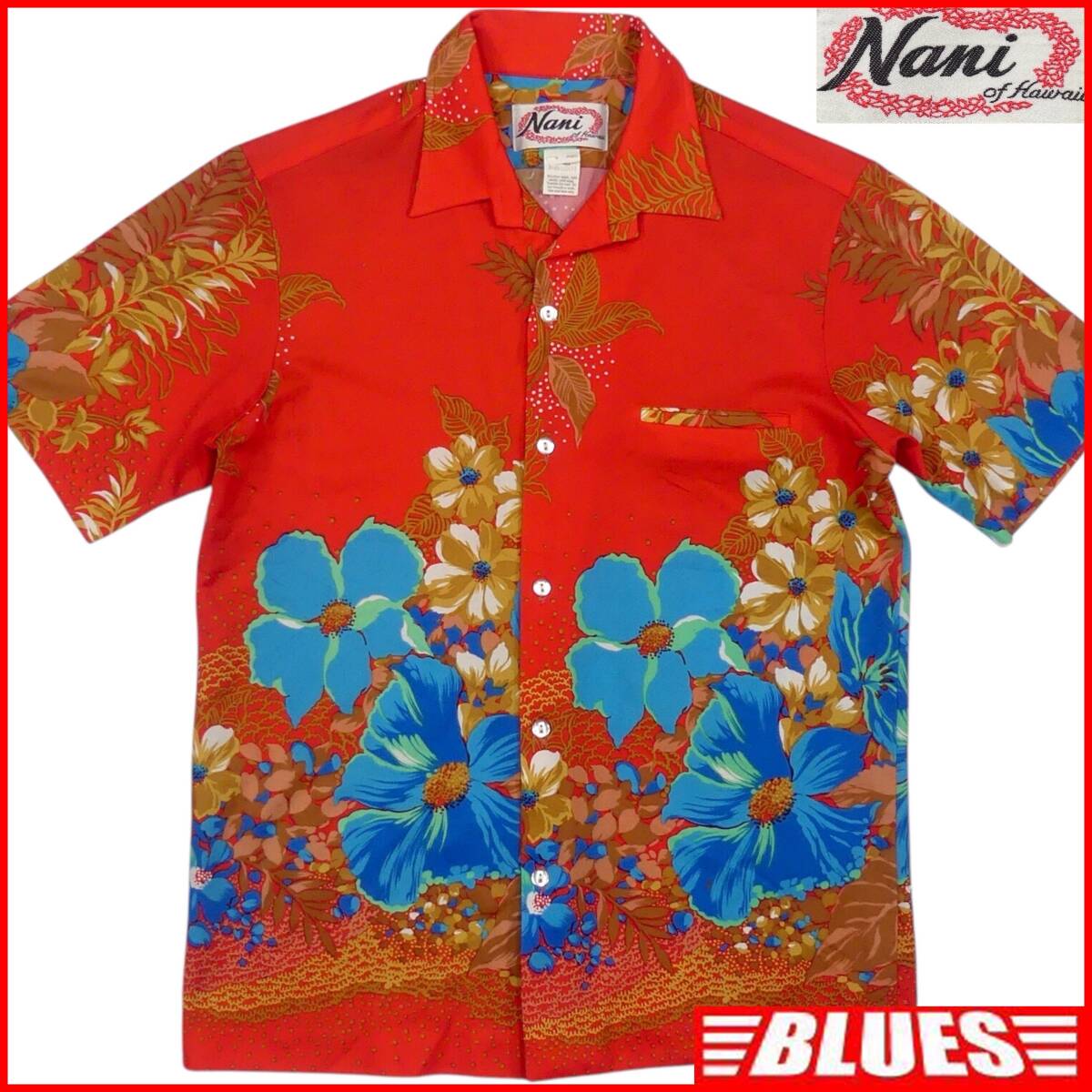 即決★Nani of Hawaii★アロハシャツ M ナニオブハワイ 総柄 レッド系 コットン 半袖 ヴィンテージ