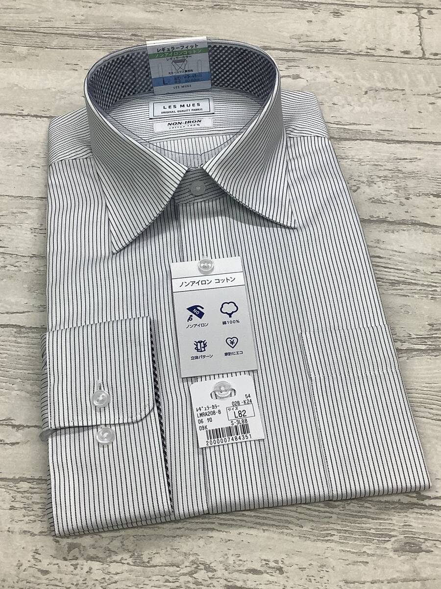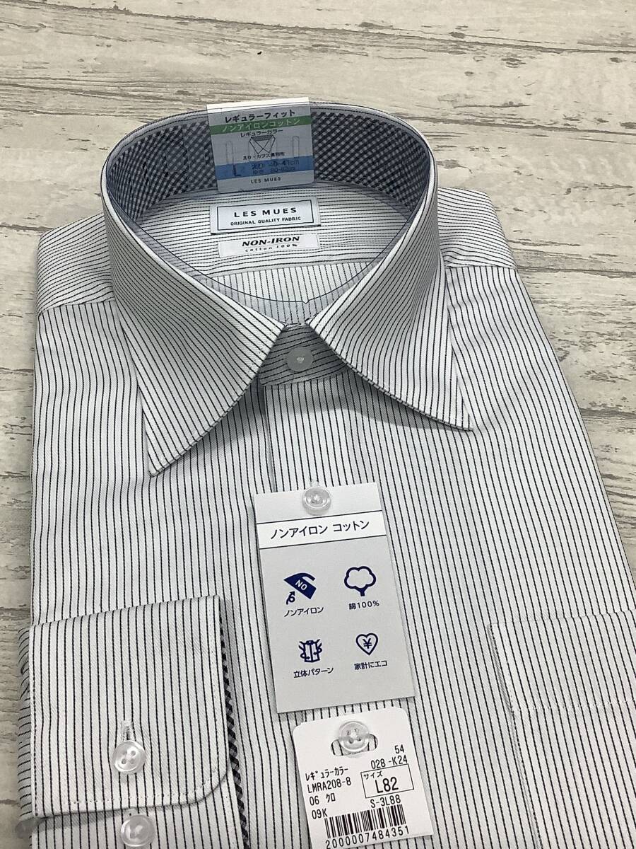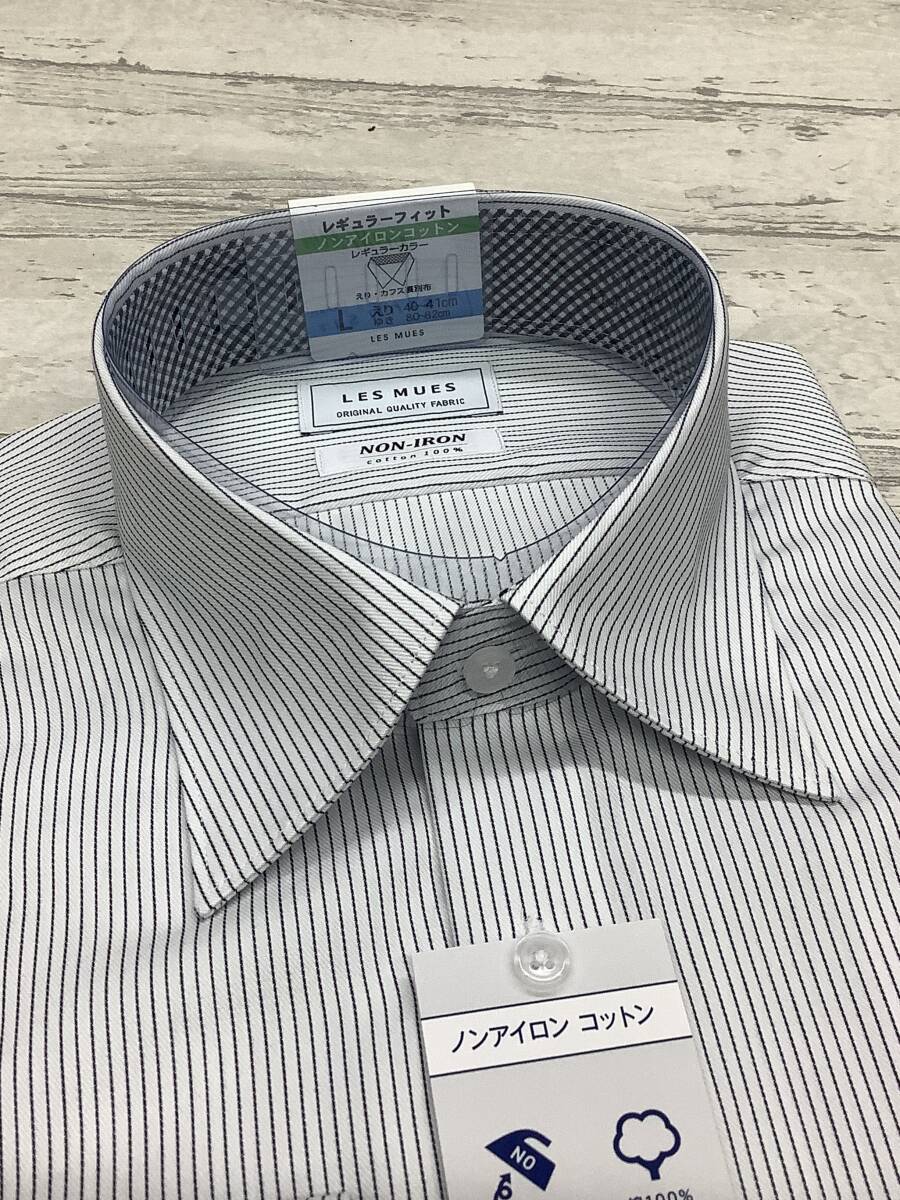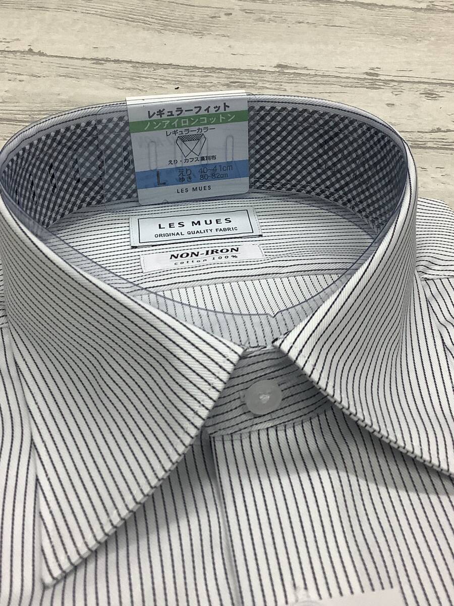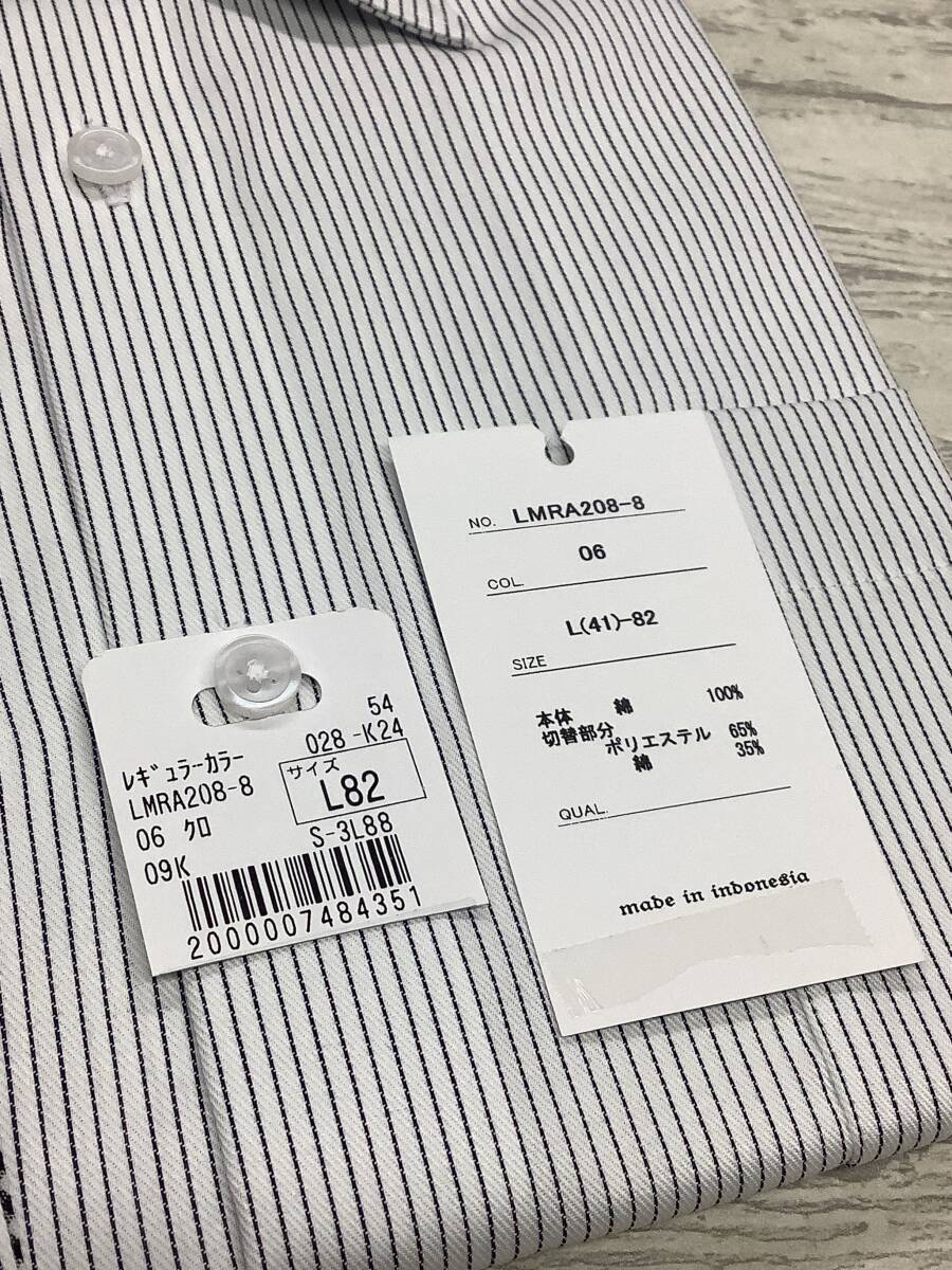 新品未使用 41-82 長袖Lサイズ ★綿100%★レギュラーカラー★ドレスシャツ 黒ラインストライプ柄生地 ノンアイロンコットン