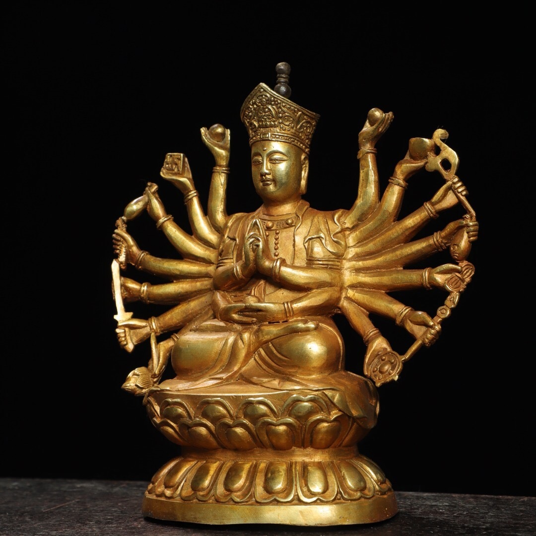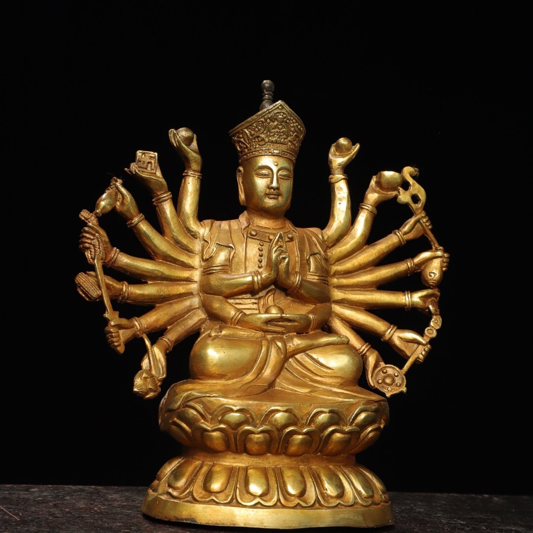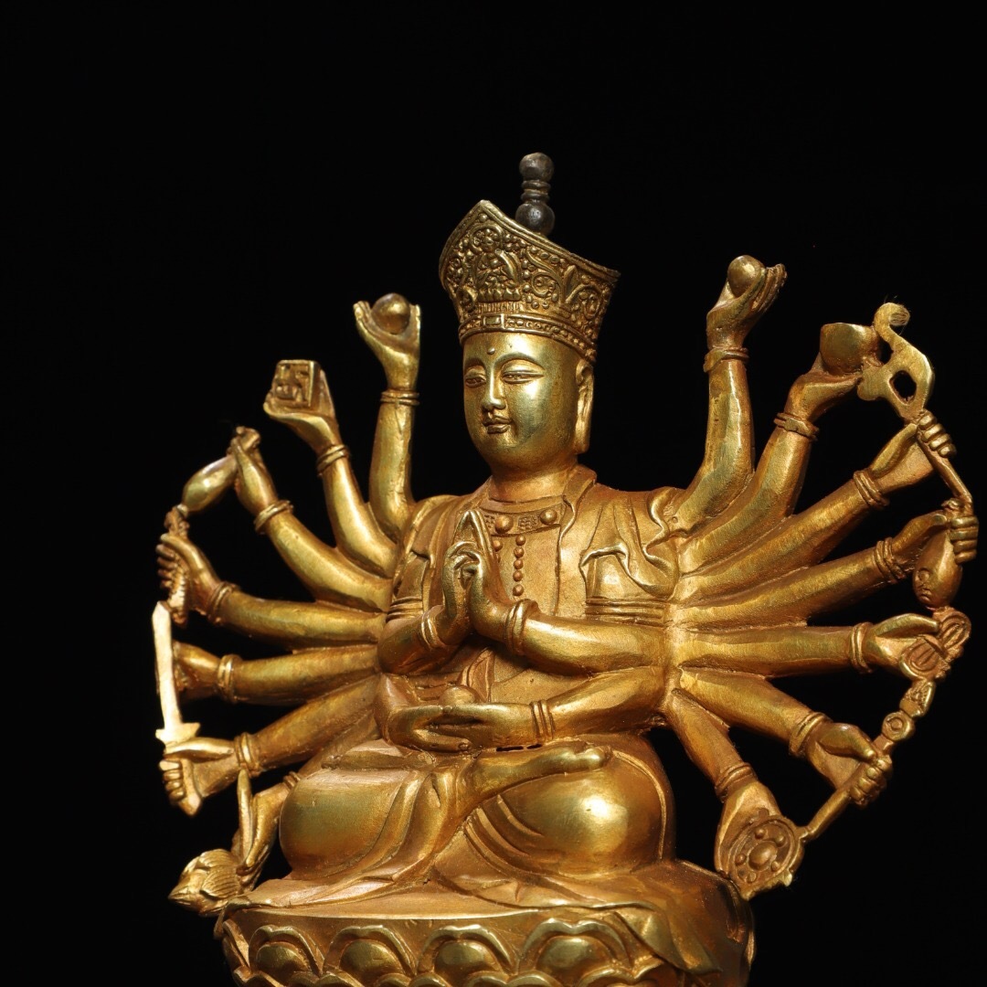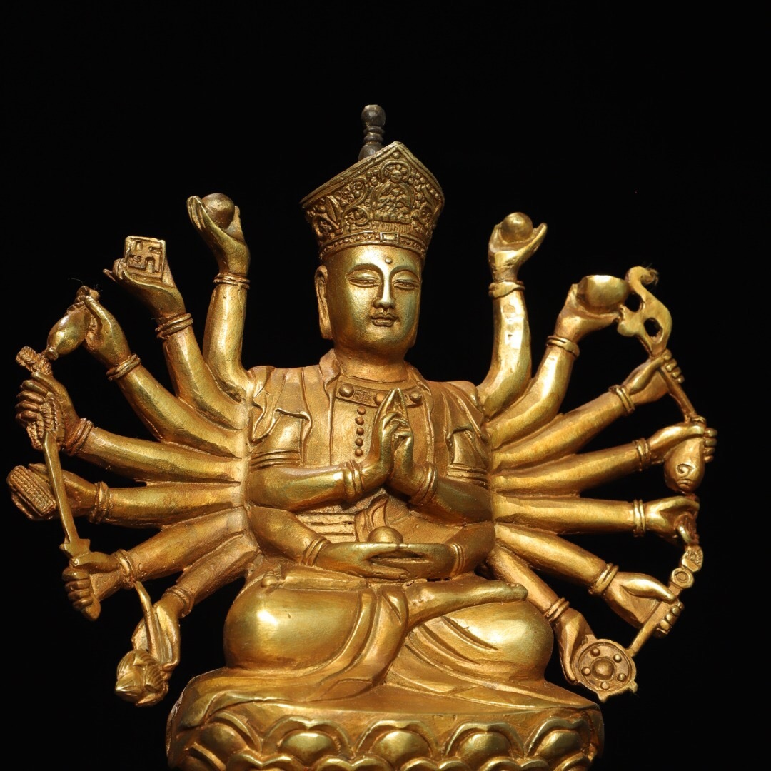 【超珍館蔵】銅製 塗金 準提菩薩像 仏教古美術 供養品 古賞物 古美術品 稀少珍蔵品