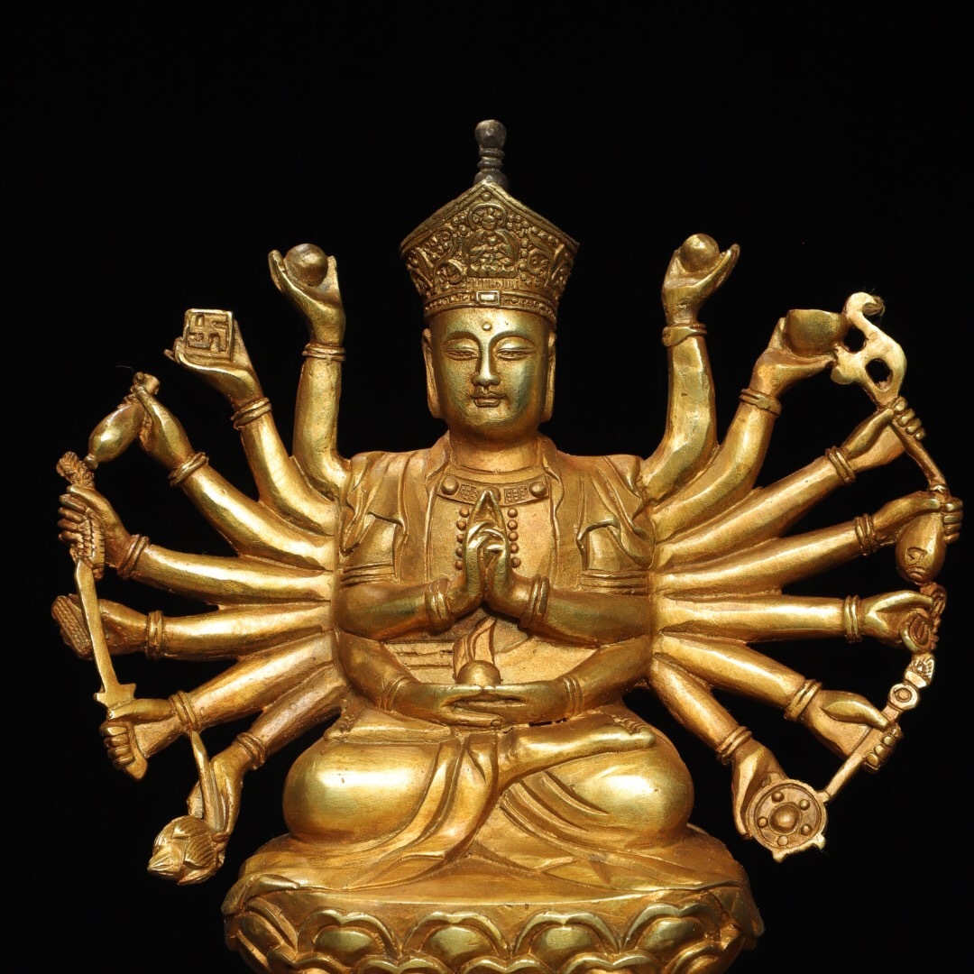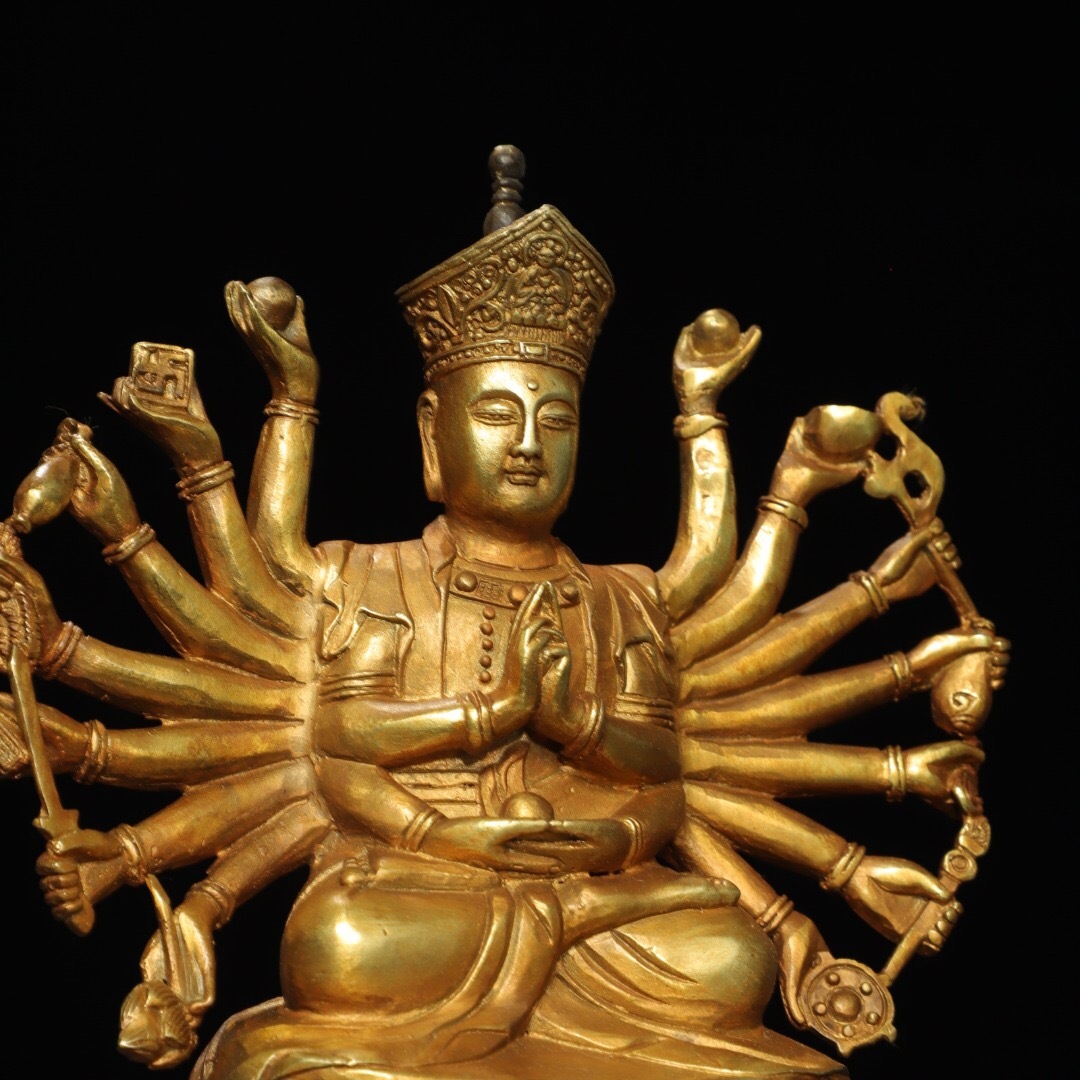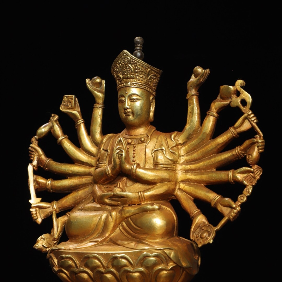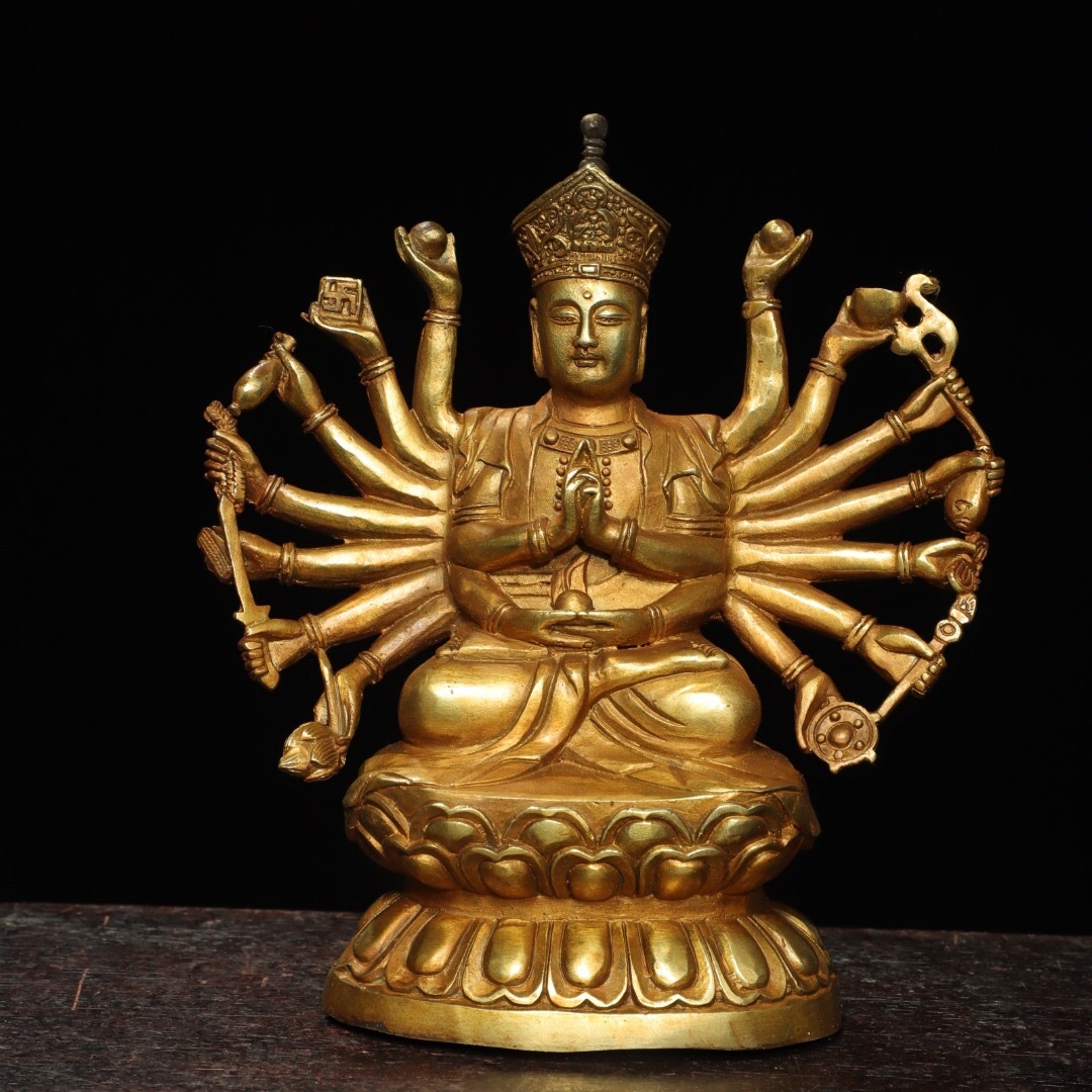 【超珍館蔵】銅製 塗金 準提菩薩像 仏教古美術 供養品 古賞物 古美術品 稀少珍蔵品