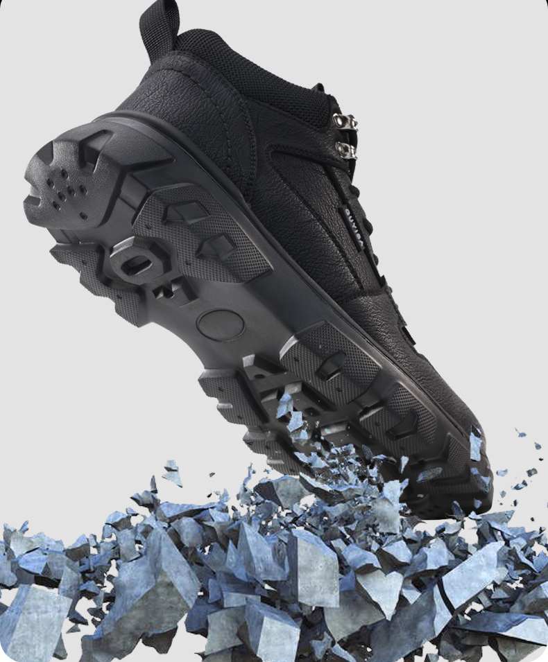 「耐貫通性ソール」防弾ケブラーミッドソールを搭載し、1100Nの貫通力に耐える。釘などから足を守ります