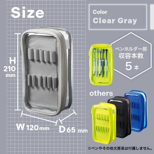 ○透明のフタからペンが見えるクリヤータイプのペンケース