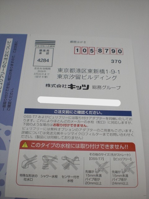 KITZ キッツ株主優待冊子1冊 オアシックス浄水器フィルター 北澤美術館 紅や 稀石の癒 数量3