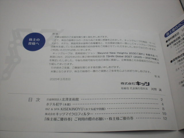 KITZ キッツ株主優待冊子 オアシックス浄水器フィルター 北澤美術館 紅や 稀石の癒