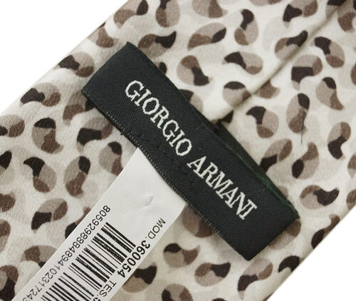 未使用 アルマーニ ブランド ネクタイ ジョルジオ 360054 高級 シルク 100% ペイズリー オフホワイト ブラウン オシャレ 02415