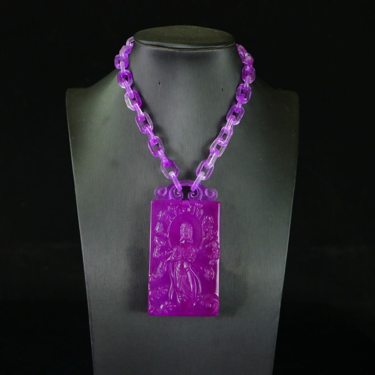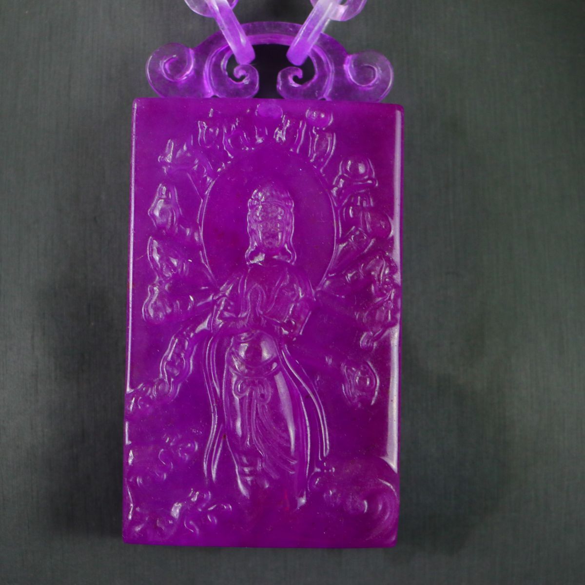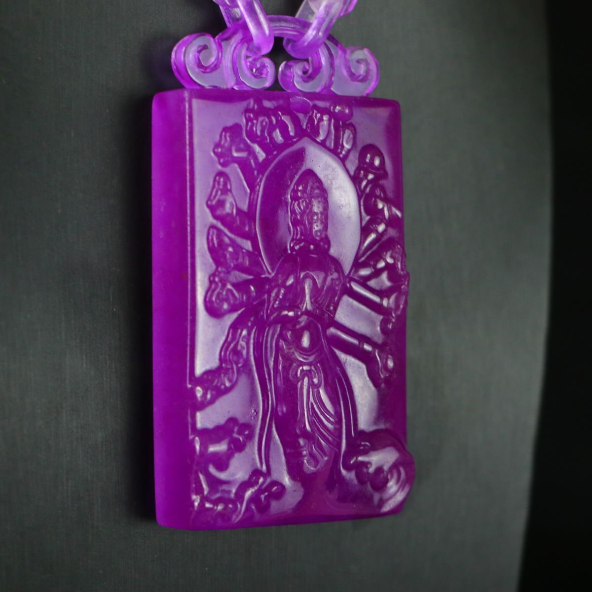 永し中国唐物 高氷 翡翠彫 紫羅蘭 千手觀音牌 一體鏈 ペンダント 極細工 根付 裝身具 置物擺件 古美術品 時代物 極美 収集家 A32