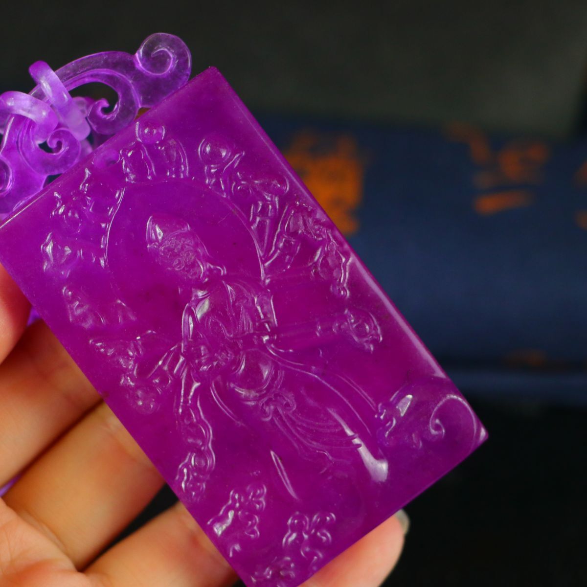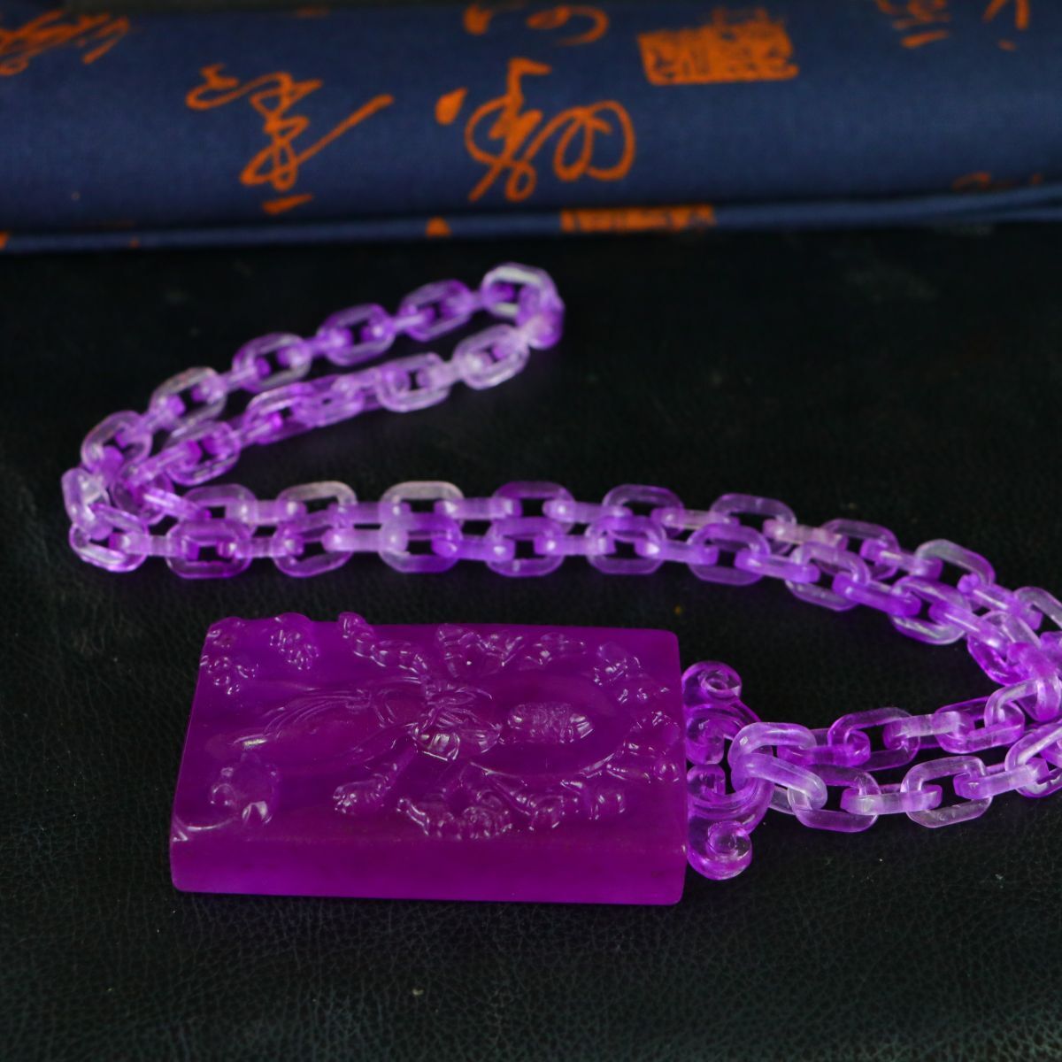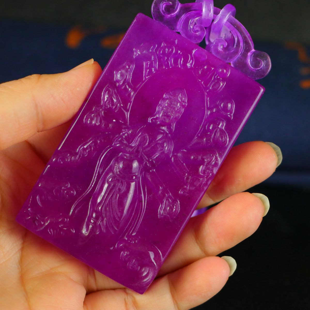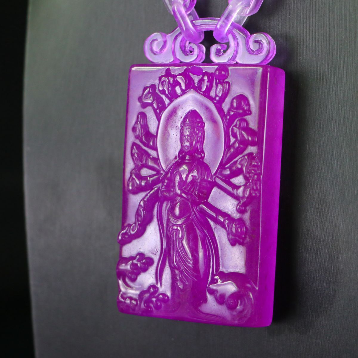 永し中国唐物 高氷 翡翠彫 紫羅蘭 千手觀音牌 一體鏈 ペンダント 極細工 根付 裝身具 置物擺件 古美術品 時代物 極美 収集家 A32