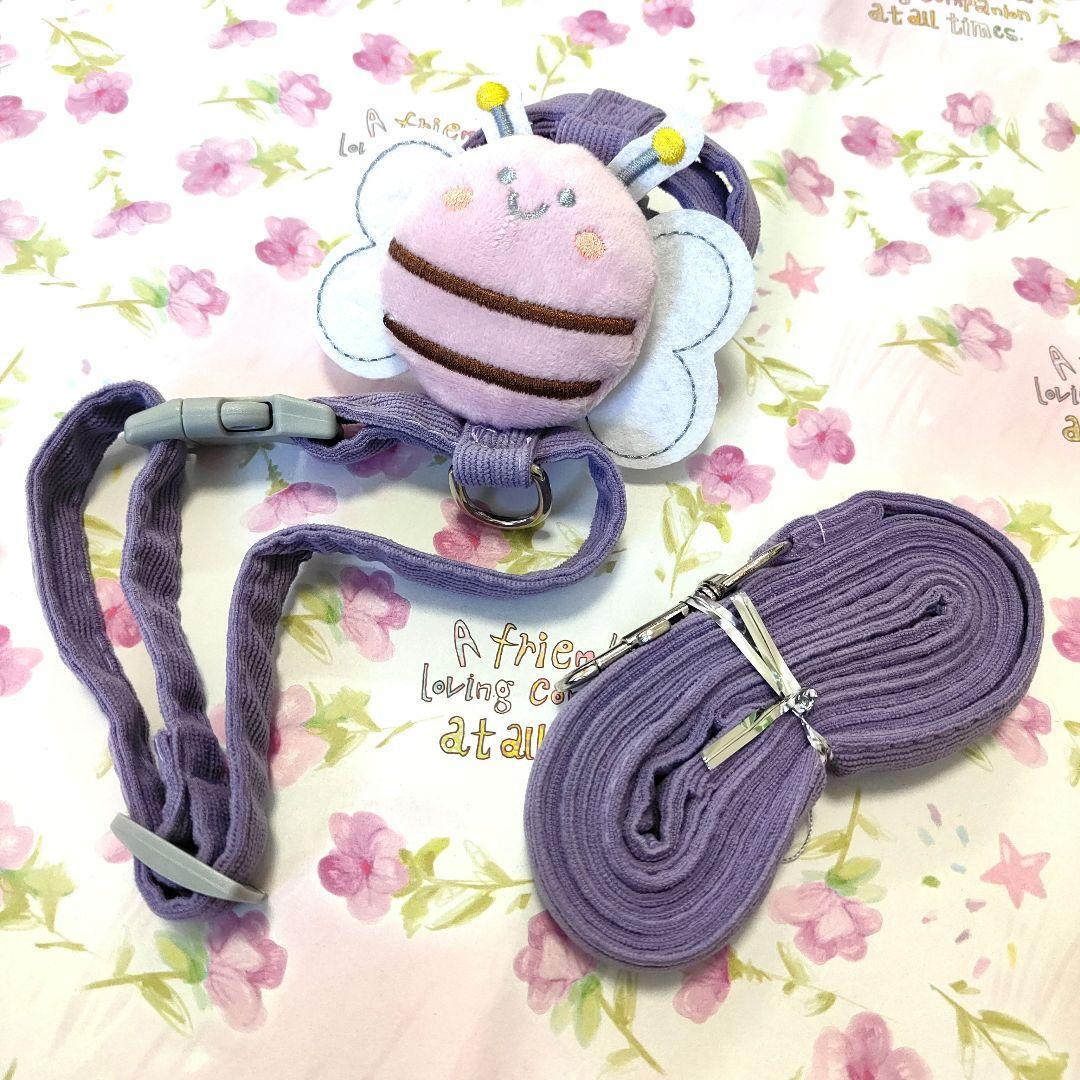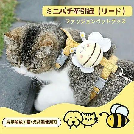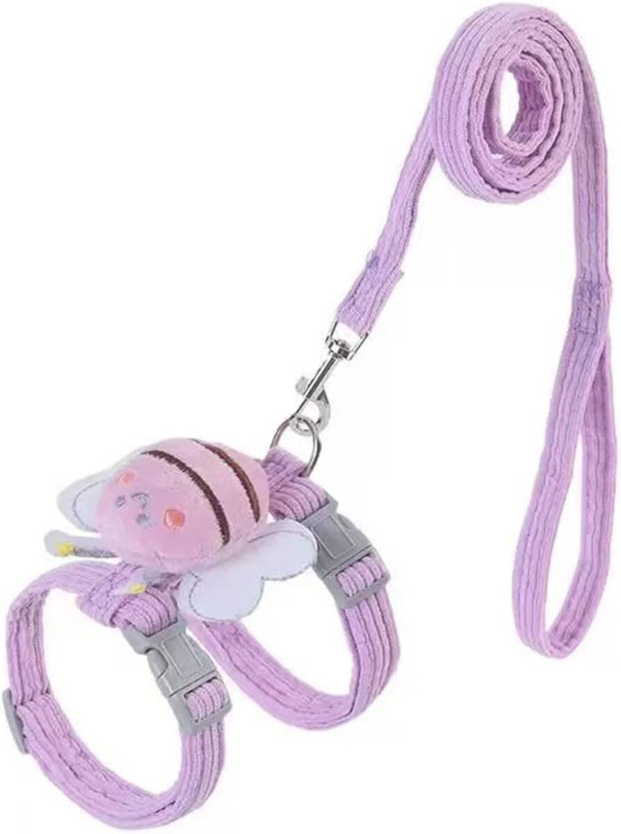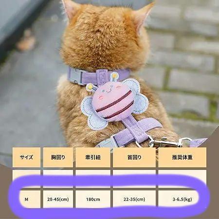 キャット用ハーネス 猫用リード 可愛いミツバチ パープル 調節アジャスター付