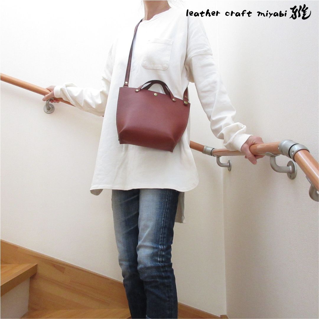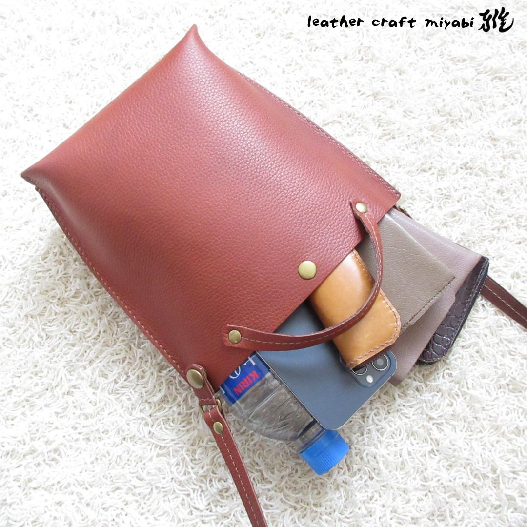 【L.C.雅】 サックっと持てる♪《牛革》2WAYショルダーバッグ・ブラウン・シュリンク・0141