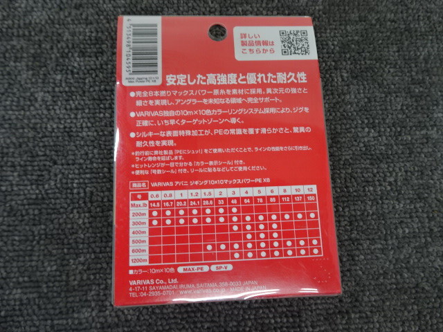 VARIVAS アバニ ジギング10×10 マックスパワーPE X8 200m 1.5号 28.6lb 8本 10色