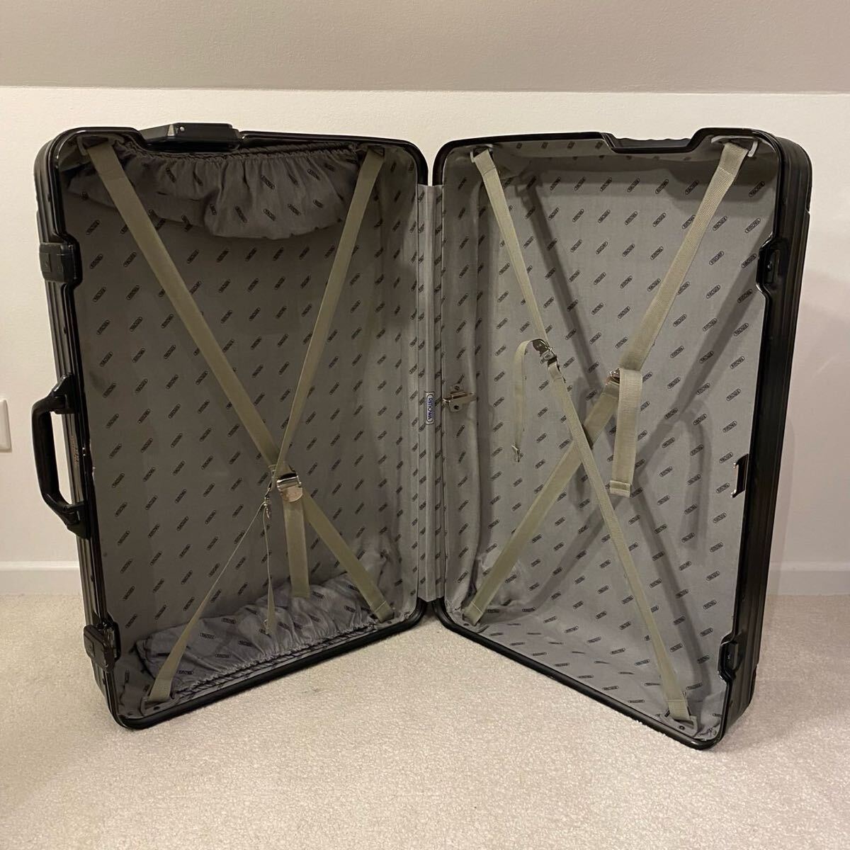 RIMOWA初期のスーツケースで、大型のケースにもかかわらず軽量かつ耐久性に優れています。