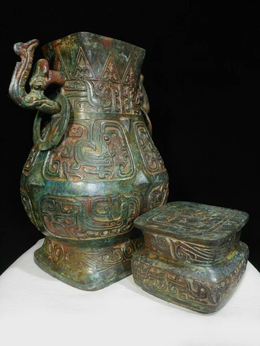 旧蔵 商周時代 青銅器皿 『杞伯敏亡壺』儀器酒盛り 銅製 銅琉金 唐物 收蔵品 時代物 古美術 古置物 希少珍品 供養品 文房具6.15