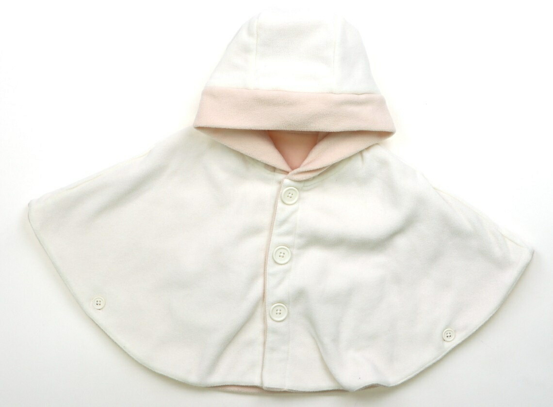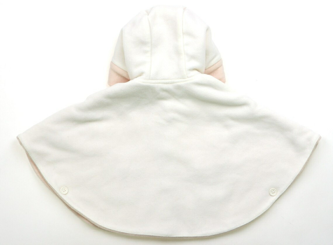 実際のサイズ表記は60-80です。フリース生地です。フードは縫い付けです。洗いざらし感はありますが、まだまだお使い頂けそうです。