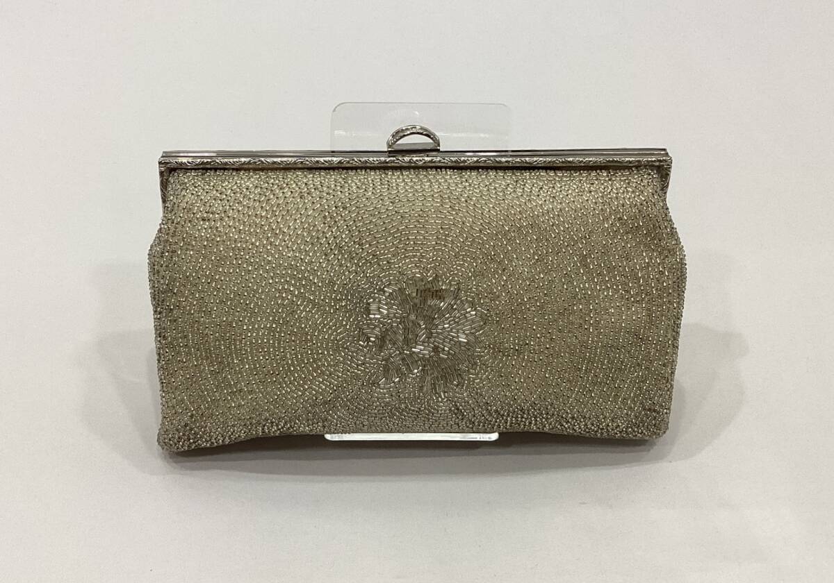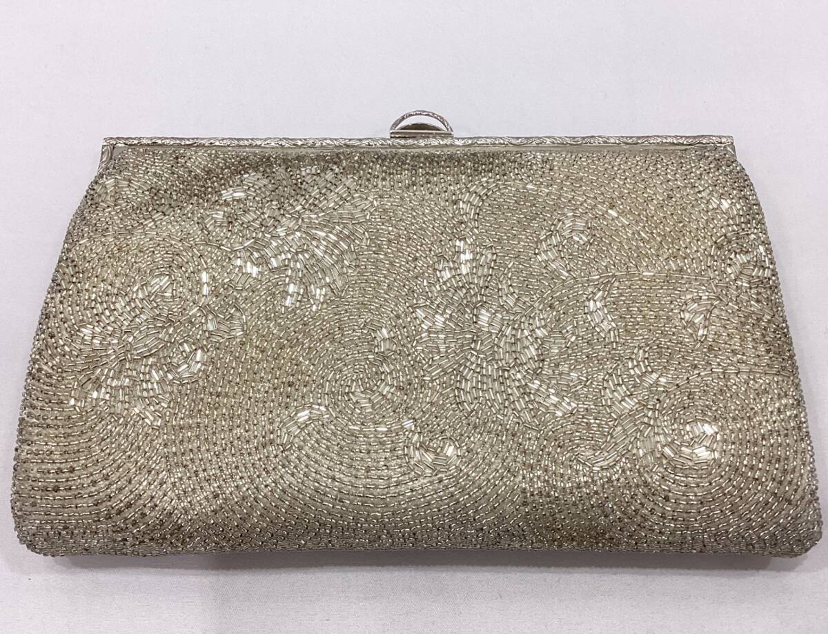 | ビーズバック/美品/クラッチバック/ビーズ刺/シルバー/レトロ/アンティーク/女物【ゆずりは】11306 |
