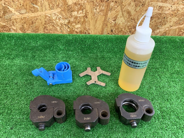 中古品のため、全体にキズや汚れ、サビがございます。 状態は画像をよくご確認のうえ ご判断ください。 【仕様】 ・電源 :AC100V ・出力 :430W ・吐出圧力:63.7MPa ・ストローク:最大12mm ・付属ダイス:3点(13、20、25SU) ※上記情報はあくまでも参考値となります。 ※中古品のため 100%の性能の保証はできかねます。 ※その他詳細な仕様はメーカーHPをご確認下さい。 通電確認、および簡易確認のみ行っております。 ある程度の圧力でプレスはされておりますが、仕様通りの強さが出ているかは保証できかねます。 中古品になりますので キズ・汚れ等がございます。 画像の物が全てになります。 他に付属品等はございません。 上記のことを ご理解・ご了承の上で ご入札を お願い致します。 その他 ご不明な点等ございましたら ご入札前に お気軽に ご質問下さい。 オークション終了日 当日は 午後5時迄に ご質問は お願い致します。 夕方以降に ご質問等 お問い合わせ頂きましても お応えするのが 翌営業時間中になりますので ご了承ください。 *詳細につきまして ご質問されましても お答えできない場合もございます。 | ||||