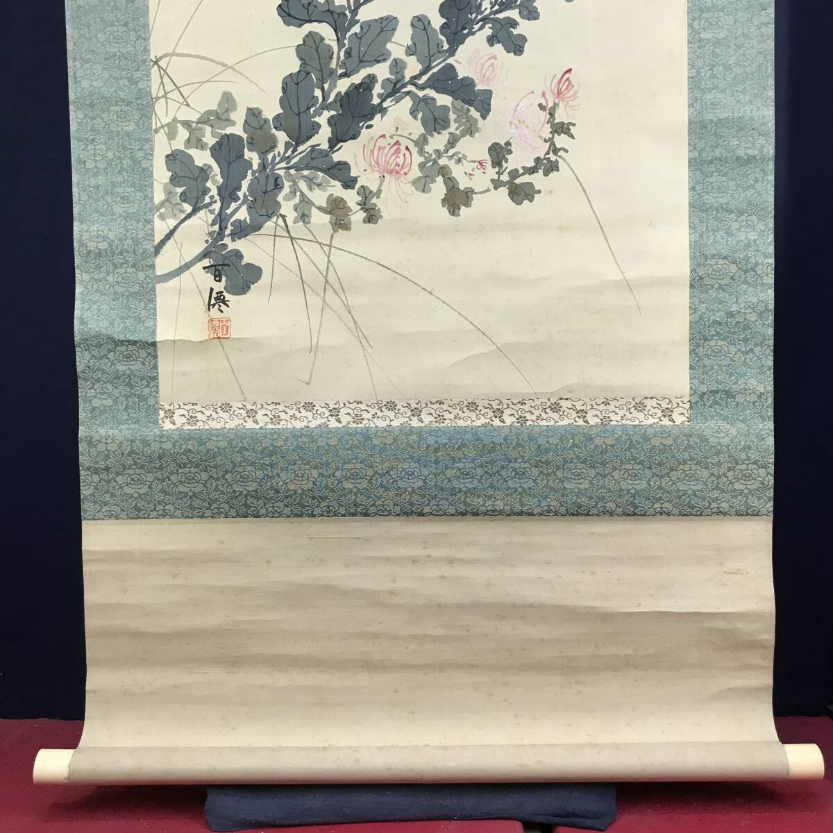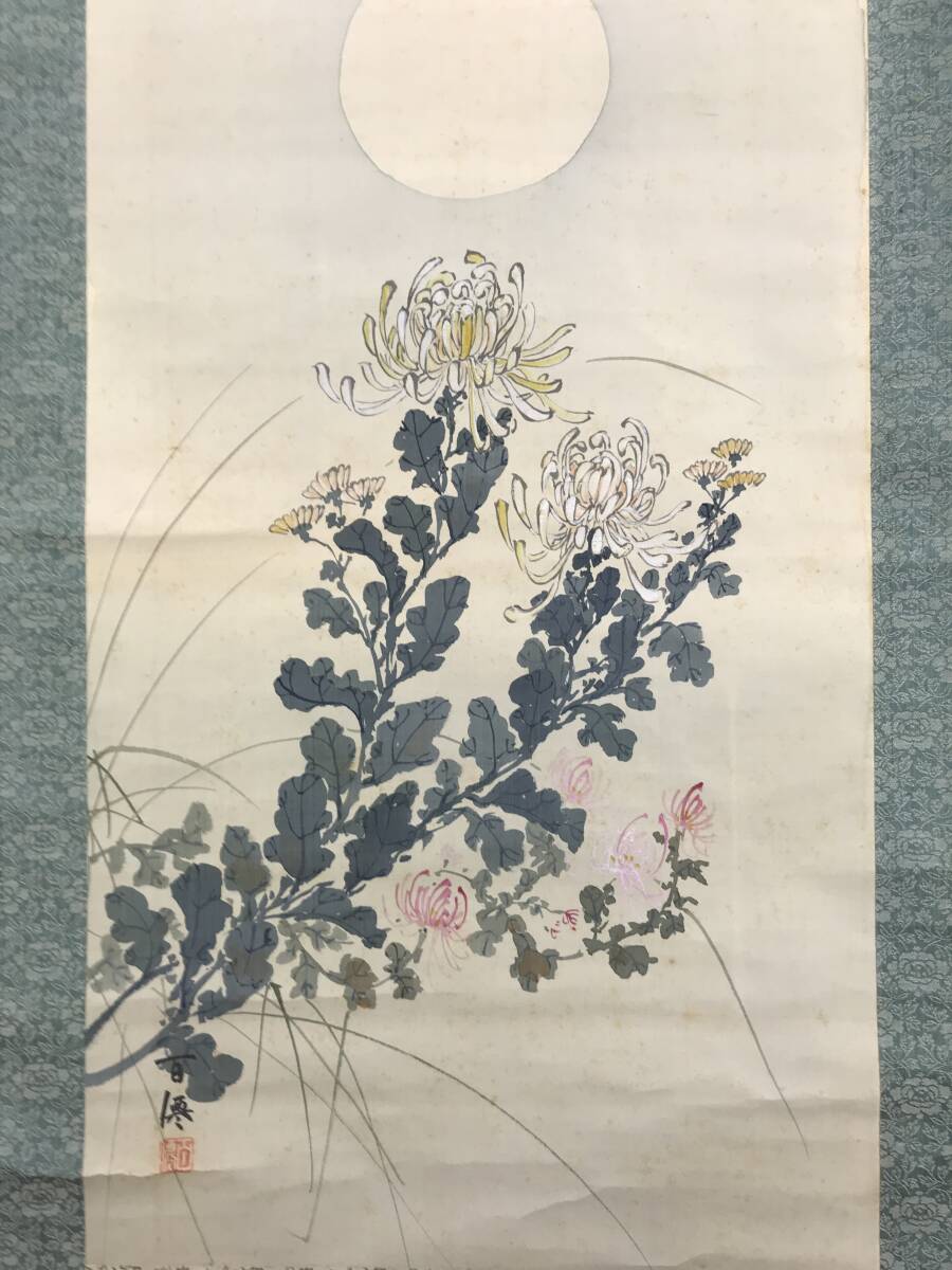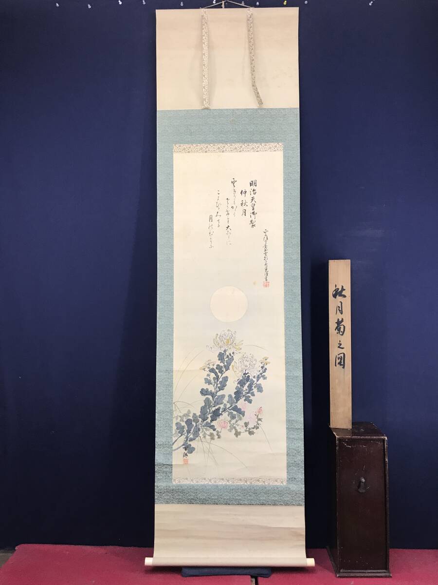 真作/鈴木松年/百僊/正三位男爵出雲/朝臣尊光(賛)/小野尊光/秋月菊之図/画賛/掛軸☆宝船☆AJ-216
