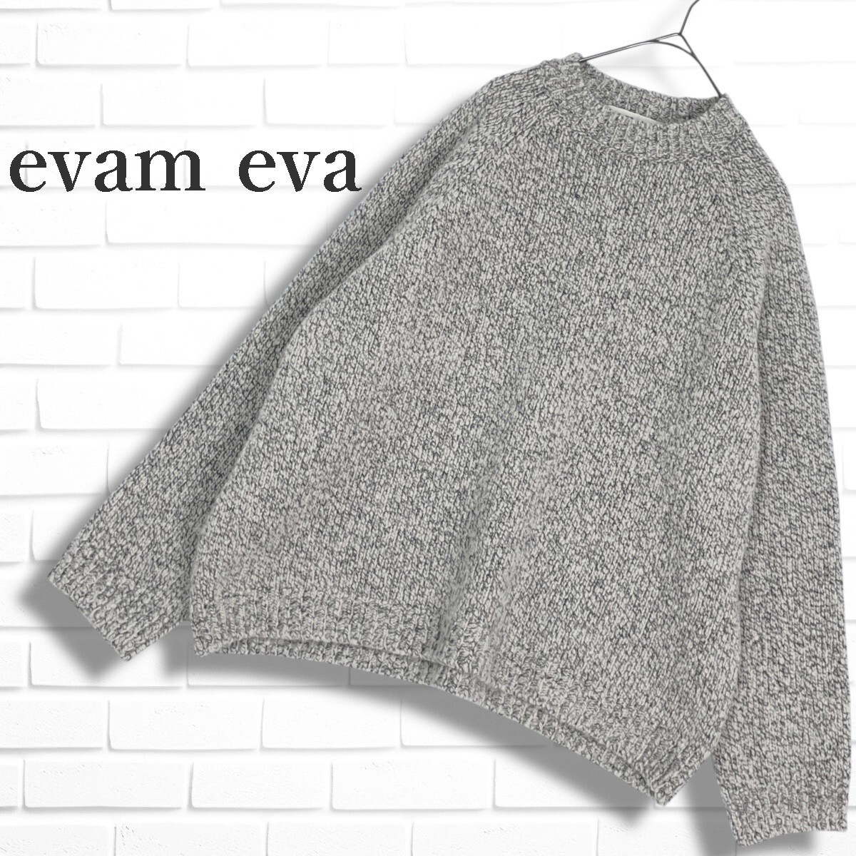 ◆美品◆ evam eva エヴァムエヴァ オーバーサイズ ゆったり♪ ウール 100% 長袖 ニット セーター 白系 × 黒 ホワイト系 ブラック レディース F ◆日本製 送料無料◆ 1295F◇