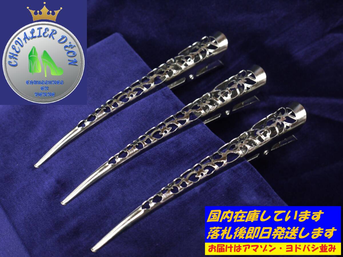 コンコルド(3点売り組み換え可)くちばしクリップ ヘアクリップ メタルクリップ シルバー 透かし花柄 13cm ヘアーアクセサリー C-S02-030