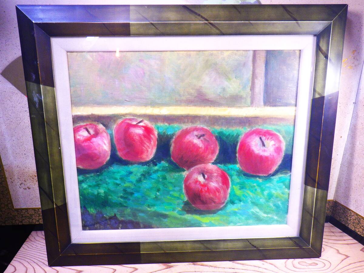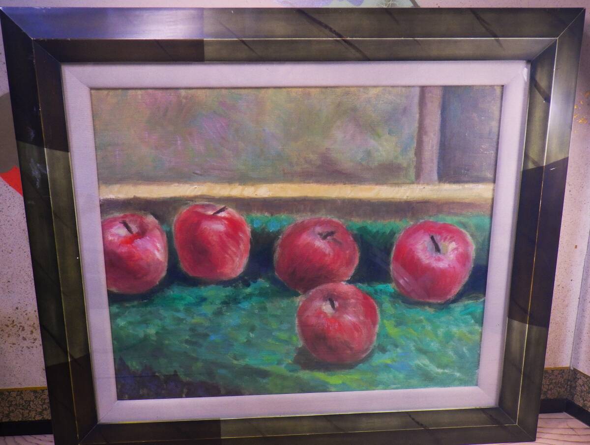 | 商品説明 | 油彩で描かれた肉筆の『林檎』『りんご』 洋画でございます。 ガラス額装の額装の大きさ:約60.2×約52.7×約5.4センチ
