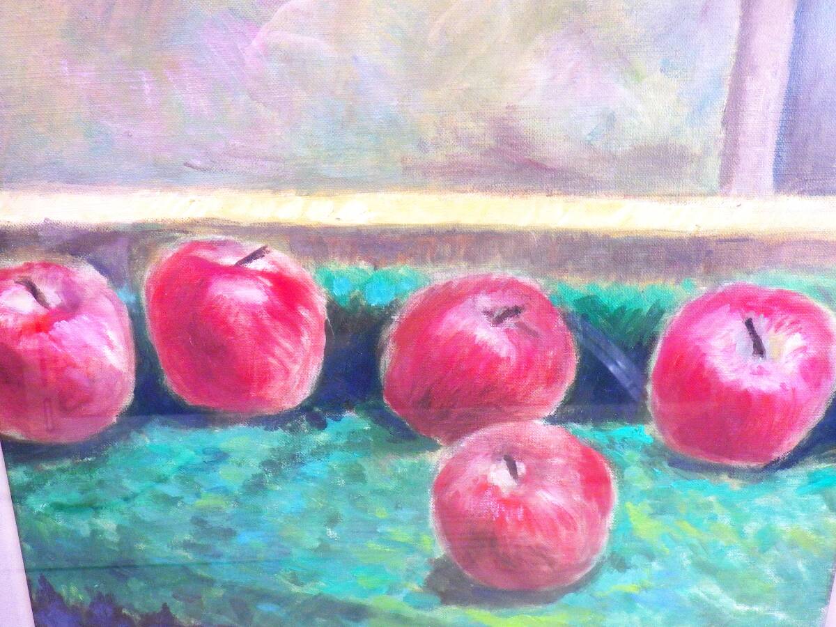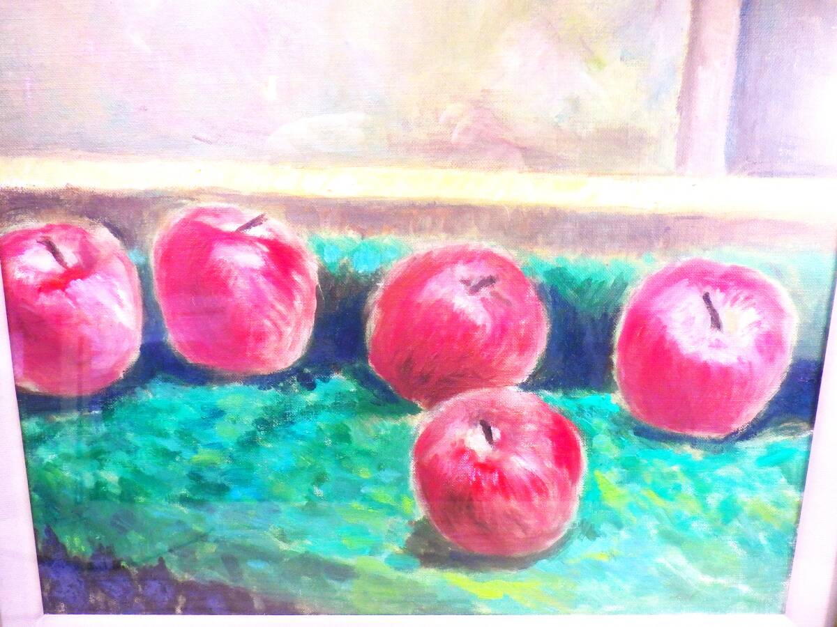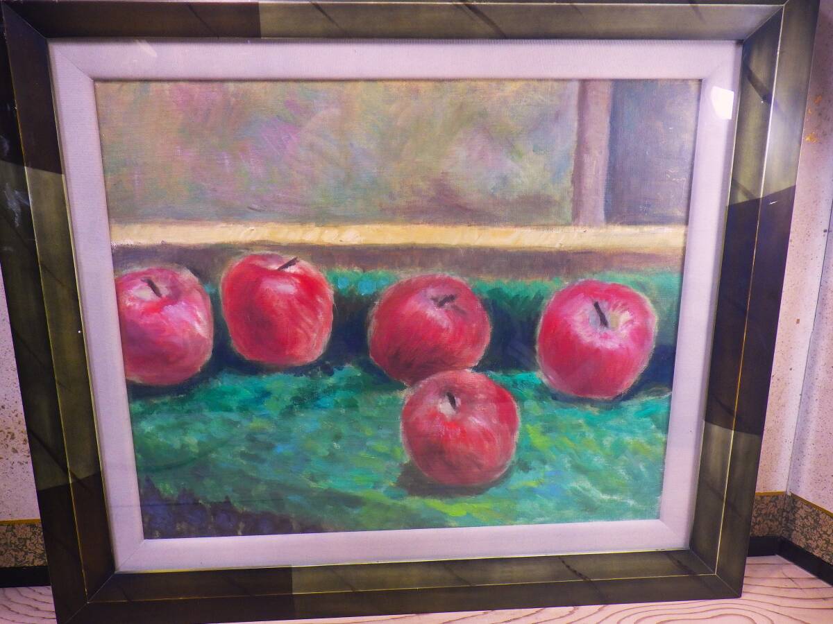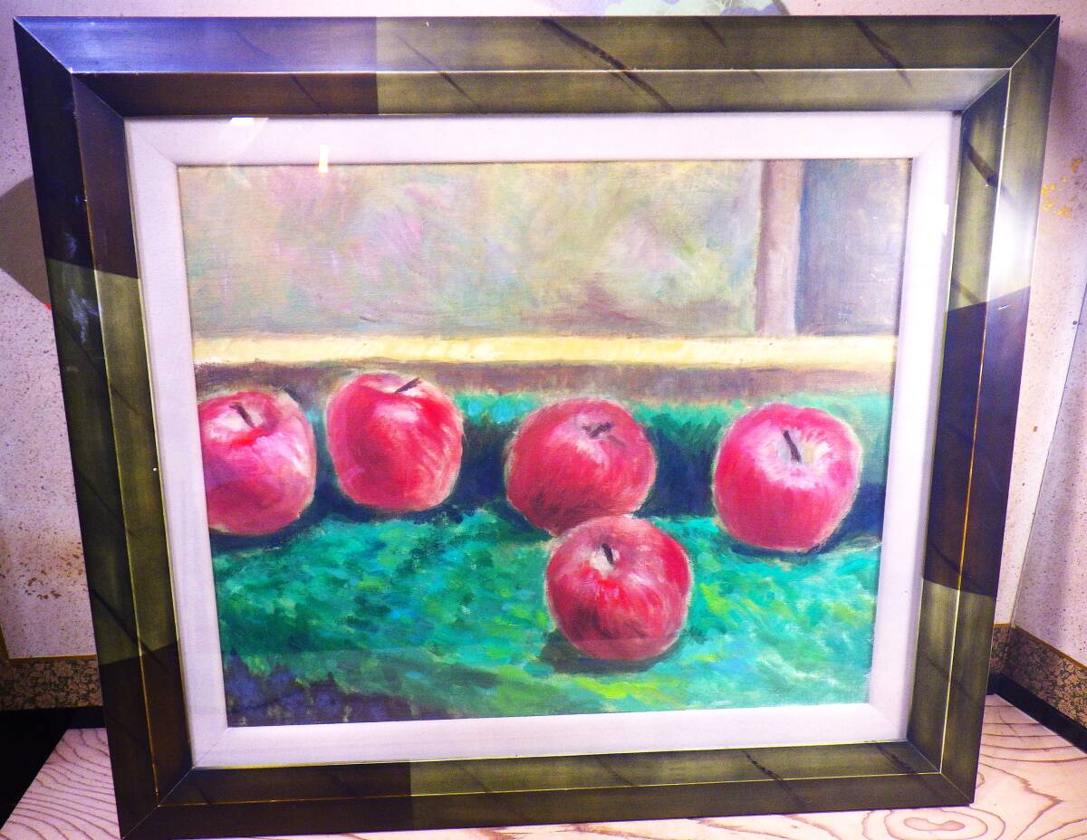 | 油彩画 『林檎』『りんご』 肉筆 お洒落なガラス額装品