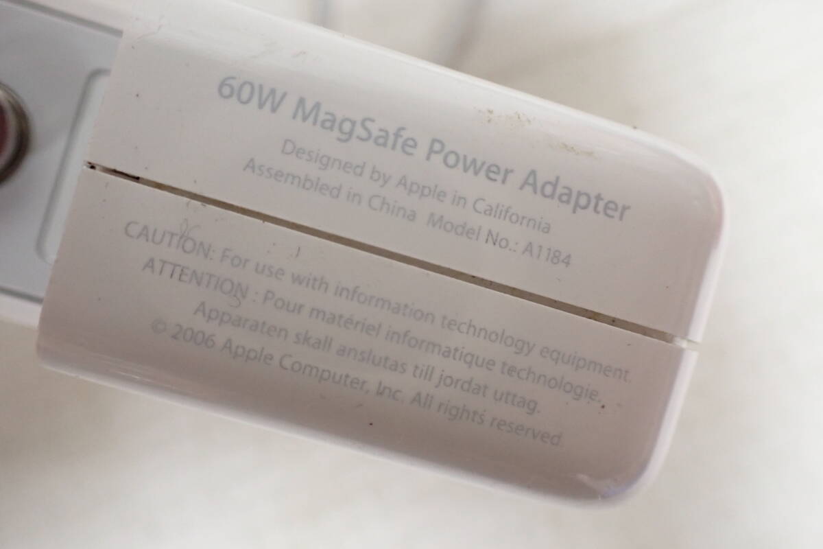 Apple Macbook 60W MagSafe アダプター A1184 充電器 ケーブル 定形外郵便全国一律660円 S4-MA 中古品です。 スレや汚れがございます。 コンセント部分を紛失しております。 動作確認をしていませんので、ジャンク品扱いにて入札をお願い致します。 詳しい状態などは画像を参考に判断してください。 状態の説明はあくまでも出品者の主観ですので、神経質な方のご入札はお控え願います。 写真に写っている物がすべてですので、その他に付属品などはありません。 ※ご使用のパソコン、モニターなどの環境によっては実際の色と若干異なって見える場合がございます。 お探しの方はお見逃しなく! この機会にぜひどうぞ! ノークレーム・ノーリターンとなります。 よろしくお願いします。 特定商取引法に基づく表記 【会社名】 株式会社 西川殖産 【代表取締役】 西川 守 【古物営業許可】 兵庫県公安委員会許可 第631641300006号 【店舗】 エタニティ野里店 【営業所所在地】 兵庫県姫路市野里311-3 アクロポリスⅡ-1F 【連絡先】 079-222-7705 【営業時間】 午前10時~午後7時 【定休日等】 水曜日は定休日となっておりますので、火曜日の夕方から水曜日にご入金、ご連絡などをしていただいた方へのご連絡・発送などは翌日以降となってしまいます。 オークションにつきましても、火曜日の夜から水曜日にご落札していただいた方へのご連絡は翌日以降となってしまいます。 ※その他、GW・お盆・年末年始などもお休みを頂いておりますので、その期間中などもご連絡・発送などできません。(※休みの期間はその都度異なりますので、お急ぎの方は事前にご質問などでご確認していただけますよう、よろしくお願いします。) こちらの都合で誠に申し訳ありませんが、あらかじめご了承いただいた方のご入札をお願い致します。 | |||