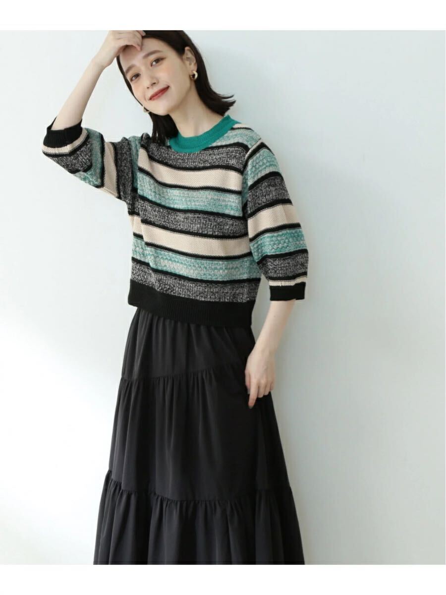 ヘザーミックスマルチボーダーニット《n.'look》 N. Natural Beauty Basic エヌ ナチュラルビューティーベーシック* トップス ニット グリーン