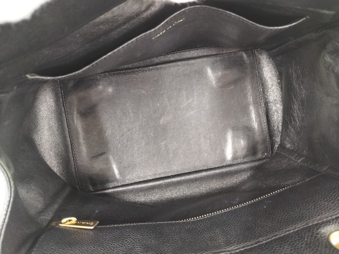 | ◆商品情報 | ・カラー:ブラック ・素材/ライン:キャビアスキン ・サイズ:最大約 W25×H19×D14(cm) ※多少の誤差はご了承下さい。 ・内側:オープンポケット×1 :ファスナーポケット×1 |
