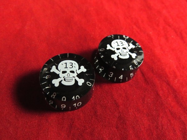 ★髑髏/スカル・デザイン★ スピードノブ/コントロール・ノブ Black-White◆2個SET ミリサイズ/Gibson レスポールなどに 女性にも人気!