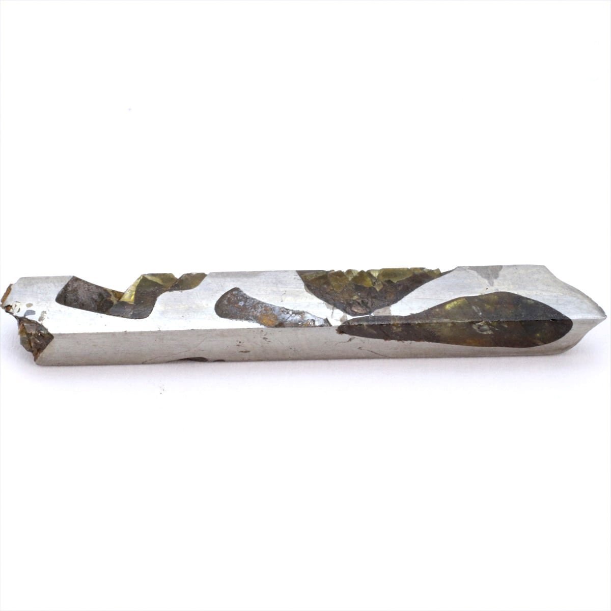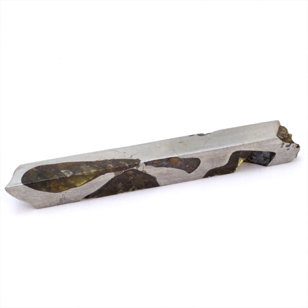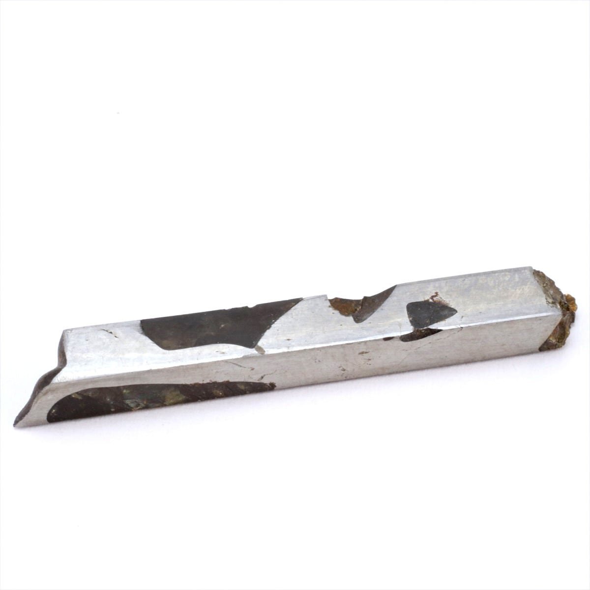 丸みのある粗粒状のカンラン石とその間を埋める鉄-ニッケル合金から出来ておりパラサイトという名前はシベリアの山中にあるクラスノヤルスク付近で発見された隕石を研究したドイツの博物学者ペーター・ジーモン・パラス氏にちなんで1772年に名付けられました。パラサイトの鉄-ニッケル部分はオクタへドライトなのでエッチングによりウィドマンシュテッテン構造が現れトロイライトやシュライバーサイトが含まれていることが多くあります。