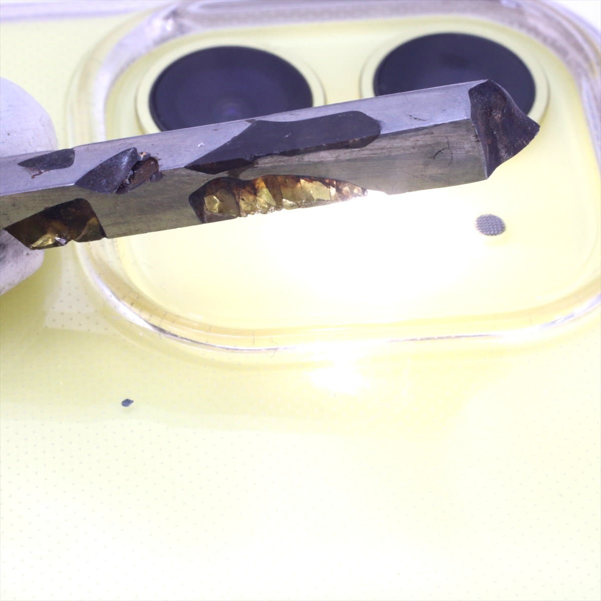 【コメント】錆防止の樹脂コーティングあり、分かりにくいですが赤丸部分のペリドットが欠けています