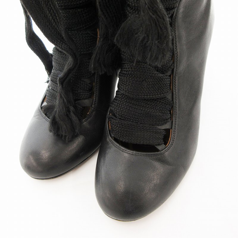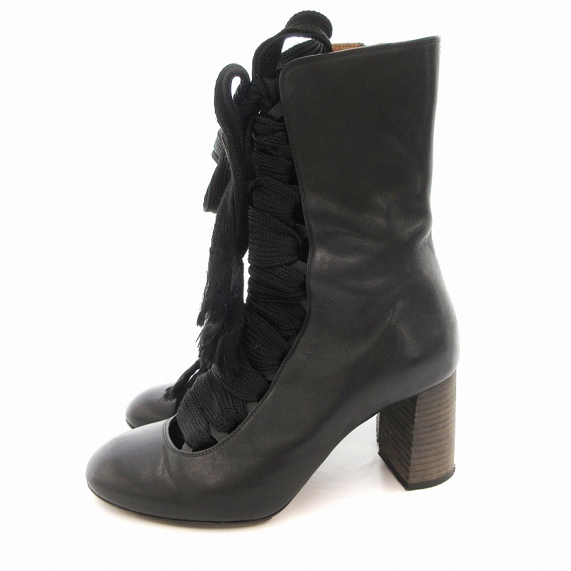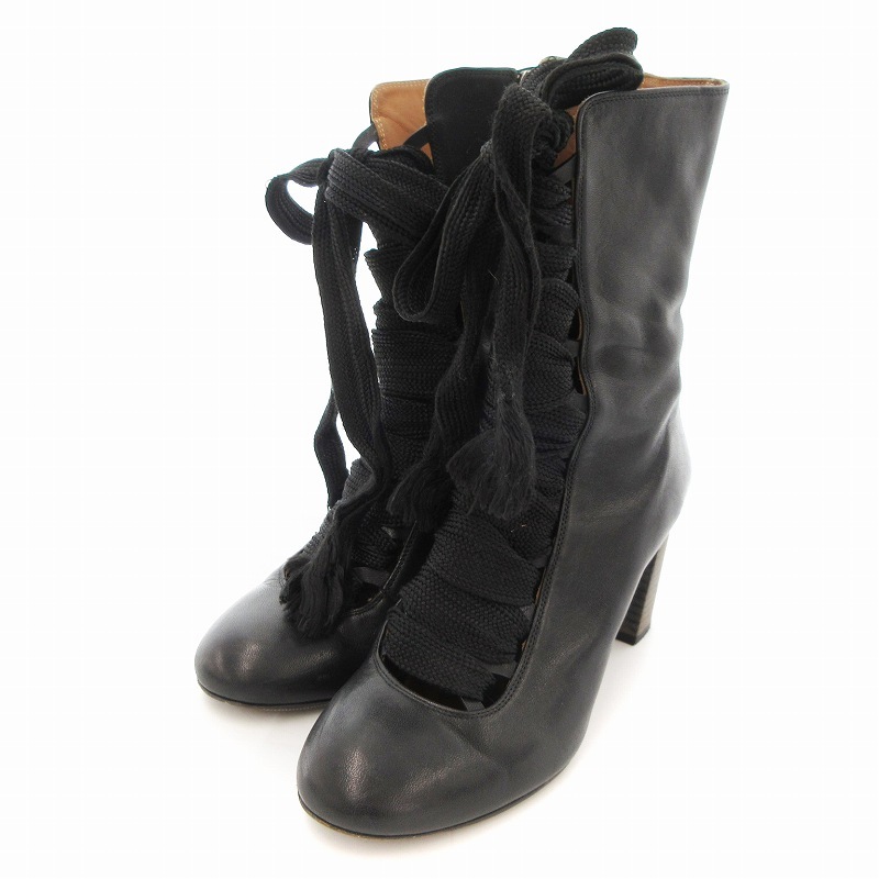 クロエ CHLOE アンクルブーツ レースアップ ラウンドトゥ 35.5 黒 ブラック /UO レディース